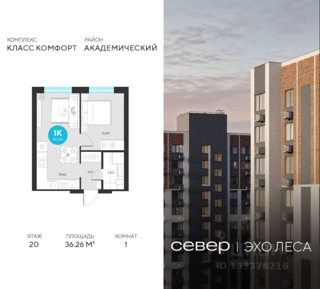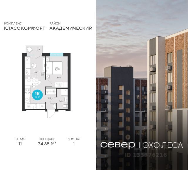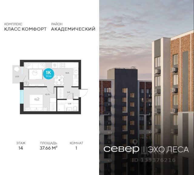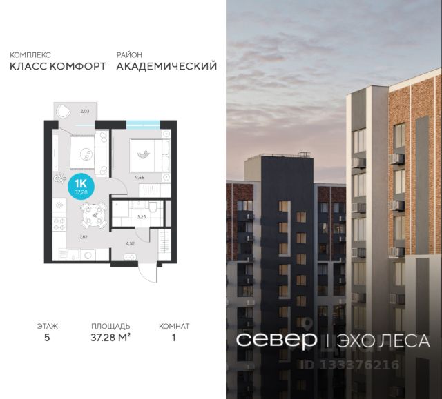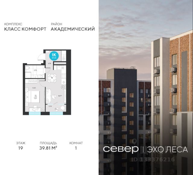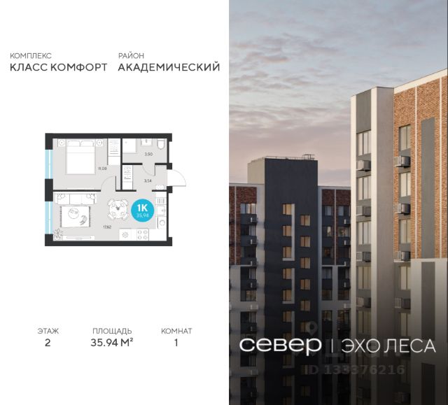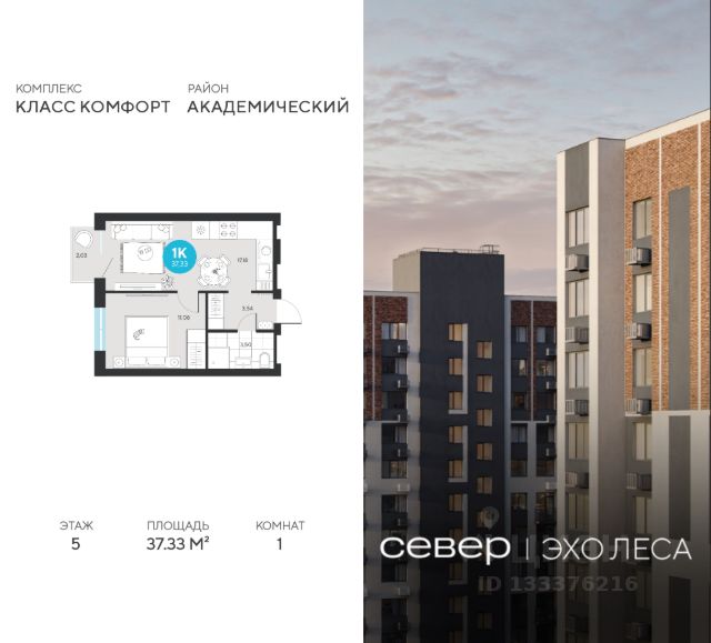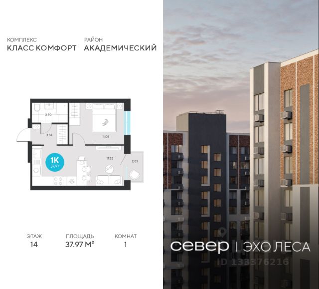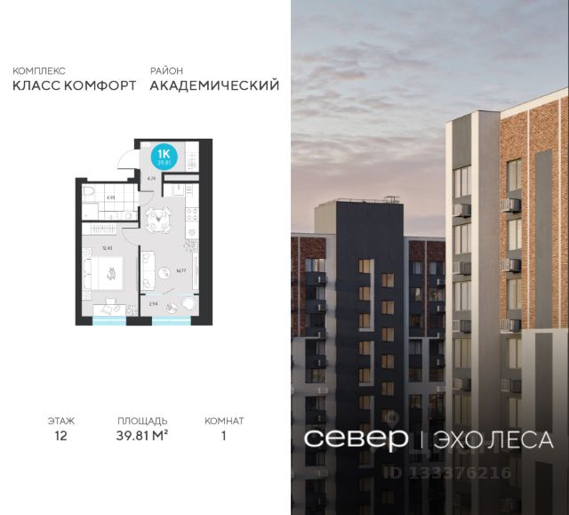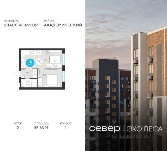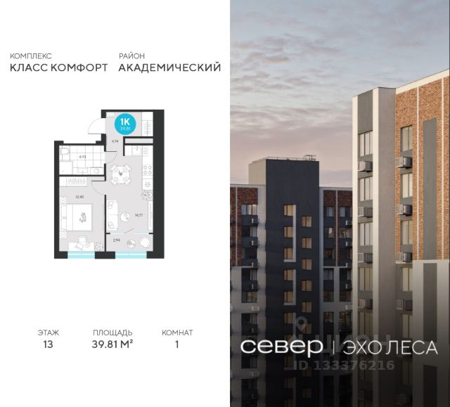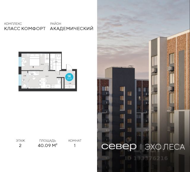 Продаётся квартира площадью 40.09 м2 в жилом комплексе "Эхо леса". Квартира находится на 2 этаже, жилая площадь квартиры 12.2 м2, площадь просторной кухни — 13.97 м2. Среди особенностей планировки — изолированные комнаты с окнами на одну сторону, 1 совмещённый санузел. Срок сдачи — I кв. 2028 Жилой комплекс "Эхо леса" — это: - дом в эко-стиле - двор с выходом в лесопарк - лаконичная архитектура - развитая инфраструктура вокруг квартала Инфраструктура В окружении проекта — вся необходимая инфраструктура: детские сады, школы, спортивный комплекс, продуктовые магазины, аптеки, кофейни, рестораны и салоны красоты. Благоустройство Концепция двора-парка продолжает тему леса. Ландшафт с продуманным всесезонным озеленением дополняют акценты: сухой ручей из камней, столы и навесы из натурального дерева, эко-тропы, фонтан и променад. Для взрослых предусмотрены пешеходные и велодорожки, для детей — игровые площадки для разных возрастов. Архитектура Переменная высота секций создаёт выразительный архитектурный облик. На фасадах — игра контрастных, при этом природных оттенков. Динамики зданию придают текстуры материалов: фактурной штукатурки и клинкерного кирпича. Лобби Интерьер в холле продолжает концепцию квартала и выполнен в эко стиле. В отделке используются элементы природных материалов с изображениями листвы и деревьев. Паркинг Тёплый подземный паркинг организован как единое пространство с собственным дизайном. Кладовые Индивидуальные помещения на техническом этаже — способ сохранить пространство в квартире. Попасть в кладовые можно на лифте. Планировки В продуманных планировках выделены тихие и шумные зоны. Приватные спальни и кабинеты спрятаны от маршрутов домашнего движения, а кухни-гостиные с барной стойкой вместо стены — всегда готовы к семейным праздникам. Из окон квартир открываются живописные виды на лес.