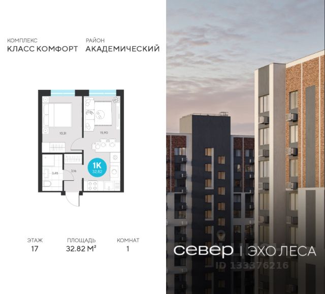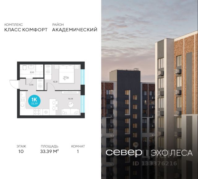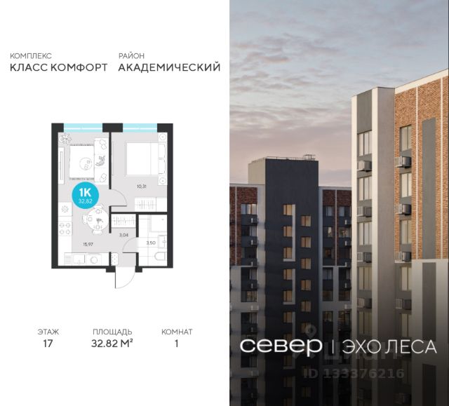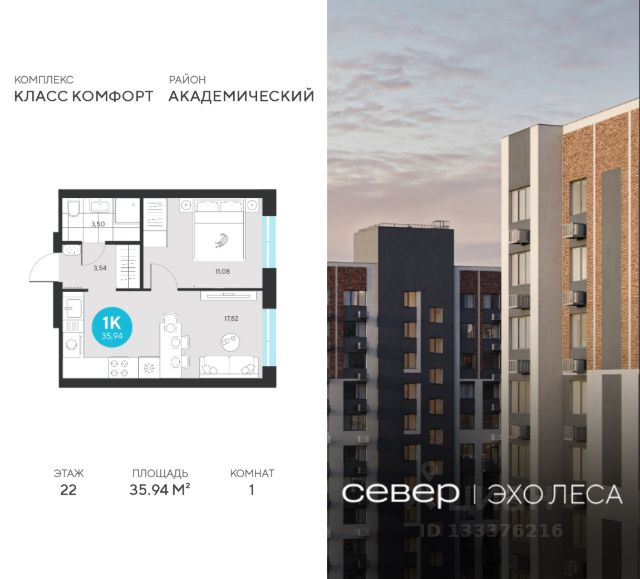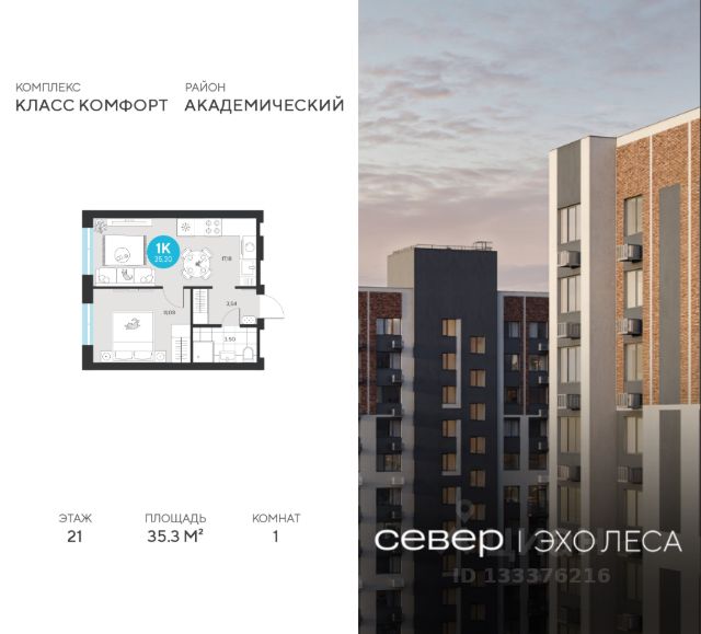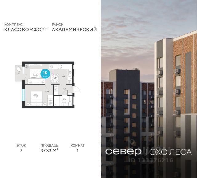 Продаётся квартира площадью 37.33 м2 в жилом комплексе "Эхо леса". Квартира находится на 5 этаже, жилая площадь квартиры 11.08 м2, площадь просторной кухни — 17.18 м2. Среди особенностей планировки — изолированные комнаты с окнами на одну сторону, 1 совмещённый санузел. Срок сдачи — I кв. 2028 Жилой комплекс "Эхо леса" — это: - дом в эко-стиле - двор с выходом в лесопарк - лаконичная архитектура - развитая инфраструктура вокруг квартала Инфраструктура В окружении проекта — вся необходимая инфраструктура: детские сады, школы, спортивный комплекс, продуктовые магазины, аптеки, кофейни, рестораны и салоны красоты. Благоустройство Концепция двора-парка продолжает тему леса. Ландшафт с продуманным всесезонным озеленением дополняют акценты: сухой ручей из камней, столы и навесы из натурального дерева, эко-тропы, фонтан и променад. Для взрослых предусмотрены пешеходные и велодорожки, для детей — игровые площадки для разных возрастов. Архитектура Переменная высота секций создаёт выразительный архитектурный облик. На фасадах — игра контрастных, при этом природных оттенков. Динамики зданию придают текстуры материалов: фактурной штукатурки и клинкерного кирпича. Лобби Интерьер в холле продолжает концепцию квартала и выполнен в эко стиле. В отделке используются элементы природных материалов с изображениями листвы и деревьев. Паркинг Тёплый подземный паркинг организован как единое пространство с собственным дизайном. Кладовые Индивидуальные помещения на техническом этаже — способ сохранить пространство в квартире. Попасть в кладовые можно на лифте. Планировки В продуманных планировках выделены тихие и шумные зоны. Приватные спальни и кабинеты спрятаны от маршрутов домашнего движения, а кухни-гостиные с барной стойкой вместо стены — всегда готовы к семейным праздникам. Из окон квартир открываются живописные виды на лес.