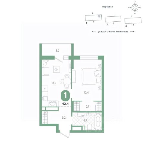 Эта квартира — образец функционала и практичности: встроенные ниши под шкафы эргономично организуют хранение, а высокие потолки подчеркивают ощущение простора. Здесь царит продуманный баланс — рациональная планировка и прозрачная логика пространства готовы служить вашим потребностям и создавать приятную среду для жизни. Квартира располагается в ЖК "Комсомольский" — жилом комплексе комфорт-класса. Здесь вы будете наслаждаться беззаботной жизнью, ведь ваш дом — воплощение практичности, безопасности и надежности. Для удобства предусмотрены колясочные на первых этажах домов, где можно оставить велосипеды и коляски в тепле. За безопасность отвечают система электронных ключей и видеонаблюдение. Еще здесь собственная котельная, поэтому в доме всегда будут горячая вода и оплата счетов только за фактически потребленное тепло. ПРЕИМУЩЕСТВА ЖК На этаже 14 квартир Красивые и функциональные парадные с мягкой и стильной зоной для отдыха, книгообменником, встроенными почтовыми ящиками и нишами для сумок Колясочные с доступом по ключу IP-домофоны Тихие лифты с плавным ходом О ПРОЕКТЕ ЖК "Комсомольский" строится в спокойном Кировском районе Екатеринбурга в границах улиц Сыромолотова — Рассветная — 40-лет Комсомола. Комплекс состоит из трех домов переменной этажности, которые выделяются динамичными линиями, выразительными фасадами и стильными лоджиями. ЛОКАЦИЯ Всё, что необходимо для повседневной жизни, находится недалеко от дома: школы, детские сады, продуктовые магазины, фитнес-клубы. Дорога до центра города на машине займет всего 10 минут — достаточно повернуть с улицы 40-летия Комсомола на улицу Владимира Высоцкого. Рядом с этим перекрестком начинается "Тропа здоровья" — большой терренкур вдоль "Каменных палаток". 10 мин до центра 3-4 минуты до школы No 82, гимназии No 176 4-5 минут до детских садов No 208, No 583, 266 20 мин до Свердловского областного медицинского колледжа и Центральной городской больницы No 7 В рамках стратегического развития района на первых этажах домов появятся коммерческие помещения, в которых откроются магазины и кафе. Следует учесть, что к 2030 году в Кировском районе планируется формирование регионального рекреационно-оздоровительного кластера, строительство ветки метро, расширение и модернизация старых промышленных зон социальной и бизнес-инфраструктуры, что приведет к созданию комфортной среды для жизни. Кроме того, в стратегию входит развитие Шарташского лесного парка как центра регионального и международного туризма. СПОСОБЫ ПОКУПКИ Ипотека: подберем выгодные условия в нескольких банках, чтобы вы могли выбрать лучшее Материнский капитал: можно использовать в качестве первоначального взноса Рассрочка: платите частями без % Сертификаты: позволяют оплатить часть стоимости квартиры О КОМПАНИИ "Паритет Девелопмент" — это современный и ответственный подход к реализации проектов в сфере жилищного строительства. Компания формирует среду, способную создать новое качество жизни для клиентов, поэтому каждый пр