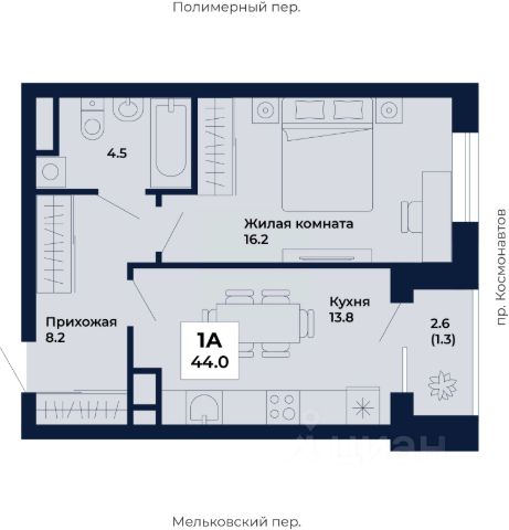 Окна на две стороны, квартира солнечная, широкий застекленный балкон