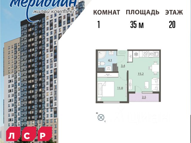 Продается 1-комн. квартира с европланировкой, площадью 35 м2 в монолитно-кирпичной новостройке в 11 мин. транспортом от м.Чкаловская. Возможен вариант покупки с использованием ипотечных средств, есть рассрочка. Жилая площадь 10.4 м2, кухня 17 м2, чистовая отделка. Раздельных санузлов - нет, балконов - нет, лоджий - нет. Квартира располагается на 14 этаже 24-этажного дома в ЖК Меридиан. Застройщик - Специализированный застройщик ЛСР. Недвижимость-Урал, сдача дома - I квартал 2026 года, высота потолков 2.5 м. Парковка автомобилей - наземная. Инфраструктура: школа, детский сад, детские площадки, спортивные площадки, места для отдыха, супермаркет. "Меридиан" - уютный жилой комплекс от "Группы ЛСР", который расположен в активно развивающейся части Екатеринбурга - Академическом районе. За счет близости лесного массива и реки Патрушихи в локации сложилась благоприятная экологическая обстановка. В состав жилого квартала "Меридиан" входит шестнадцать панельных домов высотой от 8 до 25 этажей с разноцветными фасадами, а также здание образовательного центра. Новостройка расположена в юго-западной части Екатеринбурга, недалеко от ЕКАД, на границе микрорайонов Академический и Широкая речка, рядом с улицей Суходольская, по соседству с малоэтажным кварталом "Мичуринский". Позвоните и узнайте условия покупки прямо сейчас! Продам 1-комнатную квартиру в ЖК Меридиан в Екатеринбурге.