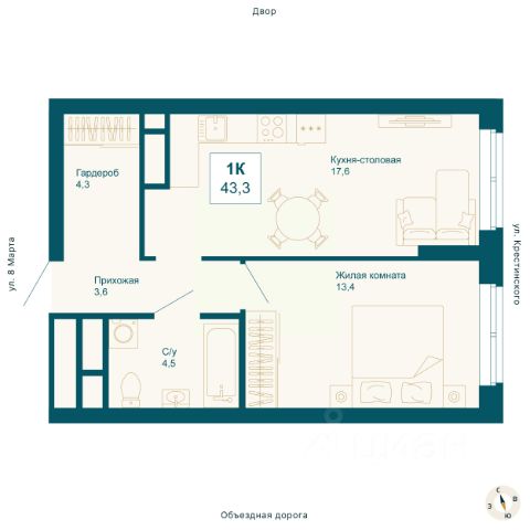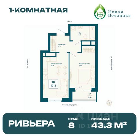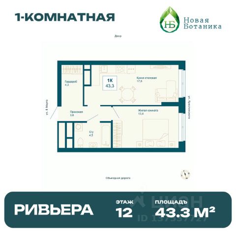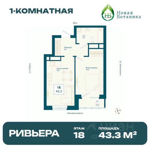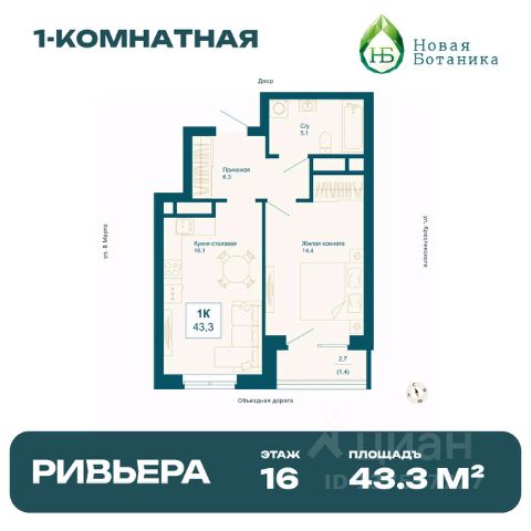 Продается 1-к квартира с чистовой отделкой в ЖК "Новая Ботаника". Общая площадь квартиры — 41.4 кв. м, этаж 10 из 21. ЖК "Новая Ботаника" — жилой квартал из восьми домов на перекрёстке улиц 8 Марта и Крестинского, в сформированном и активно развивающемся Ботаническом районе Екатеринбурга. ИНФРАСТРУКТУРА И ОКРУЖЕНИЕ — Рядом всё для жизни с детьми: школы, гимназии, лицей и несколько детских садов; — Для спорта и развития: фитнес-клуб, детские секции, бассейн, футбольные и танцевальные школы; — На первых этажах — street-retail и сервисы повседневного спроса; — На территории открыт многофункциональный медцентр "Здоровье 365" для взрослых и детей. ТРАНСПОРТНАЯ ДОСТУПНОСТЬ — Быстрый выезд на Объездную дорогу и ул. 8 Марта; — В минутной доступности трамвай и автобусы, метро "Ботаническая" или "Чкаловская" рядом; — Быстрые маршруты в центр и по городу. БЛАГОУСТРОЙСТВО Дворовое пространство зонировано: спортивная площадка и несколько детских кварталов, чтобы дети разных возрастов находили "свою" активность. Входы в подъезды на уровне земли удобны для колясок, велосипедов и пожилых жителей. Фасады выполнены из износостойкой штукатурки, устойчивой к выцветанию и повреждениям. МЕСТА ОБЩЕГО ПОЛЬЗОВАНИЯ И БЕЗОПАСНОСТЬ — Витражное остекление входных групп, мягкое разноуровневое освещение во дворах; — Контроль доступа и видеонаблюдение; — Отдельные помещения для хранения колясок и велосипедов, тихие лифты. КВАРТИРЫ И ОТДЕЛКА Квартиры передаются с чистовой отделкой и сантехникой: ламинат 32 класса, обои под покраску, окрашенный потолок, межкомнатные двери, датчики пожарной безопасности. Двухкамерные стеклопакеты с пятикамерным профилем, стальные радиаторы с терморегуляторами и горизонтальная разводка отопления повышают комфорт и помогают экономить. ДОПОЛНИТЕЛЬНО — Закрытый двор и большой наземный паркинг; — Потолки 2,7 м — Собственная управляющая компания и телеметрия. "Новая Ботаника" — удобство города и спокойствие дома. Купить 1-комнатную квартиру 1-комнатных квартир в Новая Ботаника в Екатеринбурге.
