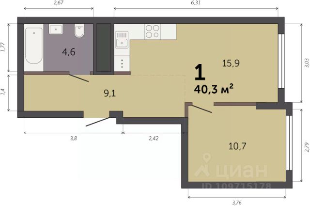 Продаётся 1-комнатная квартира в строящемся доме (Секция 1.1), срок сдачи: I-кв. 2028, общей площадью 38.1 кв.м., на 8 этаже. Новый жилой комплекс "Парк Культуры" от застройщика "СЗ Новый Дом" расположен по адресу: г. Екатеринбург, Базовый переулок.