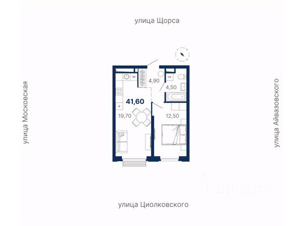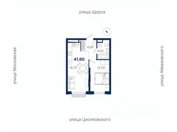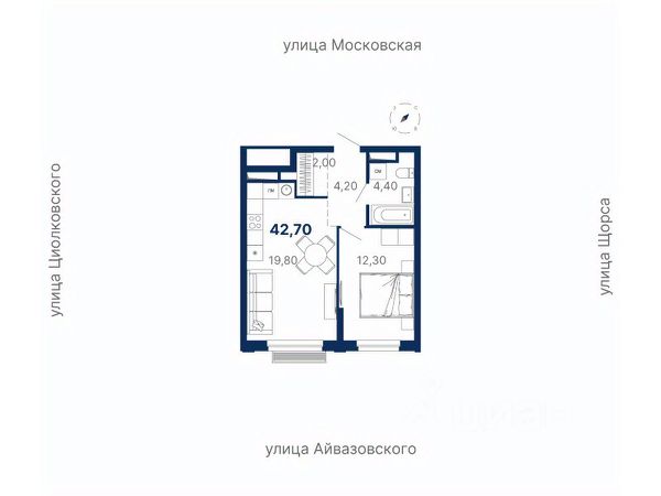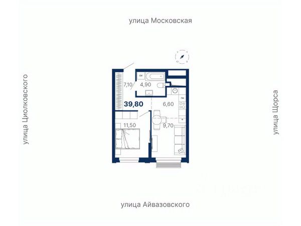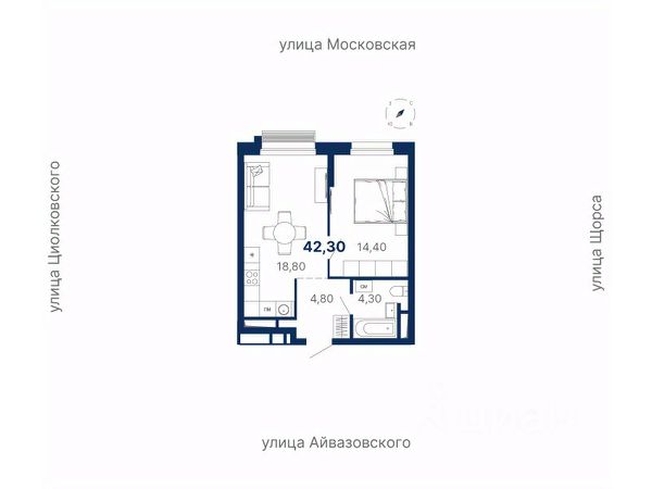 Квартира расположена на 5 этаже 32-этажного корпуса Токио. Окна выходят на юг.