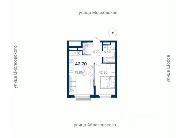 Просторная кухня-гостиная площадью 22.4 кв. м станет отличным местом для семейных ужинов и дружеских встреч. Большая спальня площадью 17,6 кв. м с собственной ванной комнатой. Также есть отдельная постирочная, что позволяет избавиться от визуального шума.