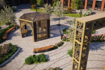 Закрытый двор, подземный двухуровневый паркинг, гостевая парковка, кладовые.