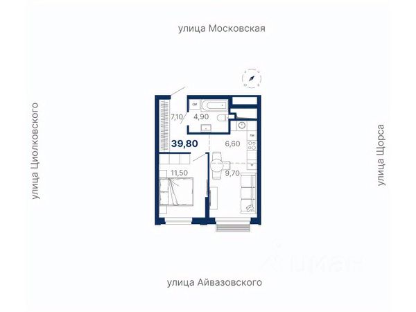 Квартира расположена на 5 этаже монолитно-кирпичного дома. Высота потолков составляет 2.9 метра, что придает пространству больше воздуха и света. Все окна выходят на улицу Московская, что позволяет насладиться городским пейзажем.