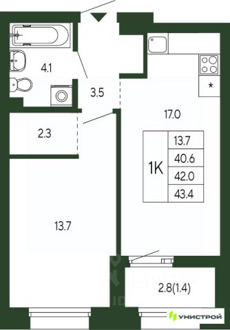 ✓ Цена за м²: 217,4 тыс. ₽/м²