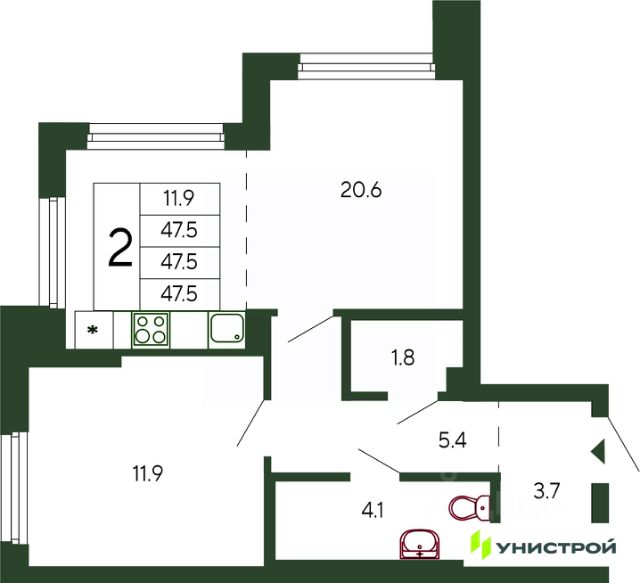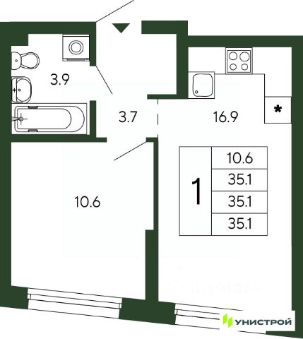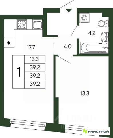 Квартира в новом доме, дом сдан в эксплуатацию, ключи в 1 квартале 2026 года, отделка под чистовую. Чистая продажа по договору переуступки.
