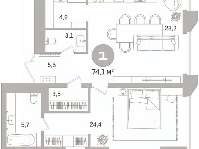 Просторная 1-комн. квартира с предчистовой отделкой в ЖК "Гоголя 21" на 10 этаже. Общая площадь: 55.57 кв.м., жилая: 14.2 кв.м., площадь просторной кухни-столовой: 22.1 кв.м. Все окна выходят на одну сторону. В квартире один совмещенный санузел. Высота потолков 2.98 м. Дом монолитный, двухподъездный, переменной этажности, от 21 до 25 этажей. Квартира находится во 2-й секции высотой 21 этаж в корпусе 1. На этаже 4 квартиры. В подъезде 2 пассажирских и 1 грузовой лифт. Начало строительства - 3 квартал 2025 года. Окончание строительства - 3 квартал 2028 года. Оформление сделки по договору долевого участия. Квартира с кухней-гостиной и одной спальней в проекте Гоголя 21. Особенности планировки: свободная планировка. квартиры в нашей базе: ЗНГ01-Ж2.10.2. Гоголя 21 станет точкой, привлекающей прогрессивных, состоятельных, предприимчивых, модных, но не пафосных людей. Людей дела. Две башни — олицетворение энергии, того самого, изначального пульса Екатеринбурга, возникшего вместе с ударами молотов первых железоделательных заводов. "Гоголя 21" деликатно, но уверенно встраивается в жизнь главной набережной Екатеринбурга. Ведёт уважительный диалог с архитектурными доминантами по соседству. Формирует новый образ городского центра. Две башни — 21 и 25 этажей — объединены четырехэтажной галереей. 169 квартир со свободными планировками, средней площадью в 128 м² и высотой потолков до 3,3 метра напоминают, что на Урале живут люди, привыкшие к простору. Ландшафтные решения в доме на Гоголя, 21 придумали не мы, а Екатеринбург. Главный здесь — гранит. Серый, фактурный, незыблемый, как сам Урал. Он часто встречается на центральных улицах, а в нашем доме используется как материал для мощения и декорирования фонтанов. Все многолетники на клумбах, от гортензии до спиреи, цветут белым: лаконичная палитра привносит в ландшафт уральскую сдержанность и элегантность. На уровне четвёртого этажа устроим главное открытое пространство для отдыха на свежем воздухе — только для жителей "Гоголя 21". В центре террасы — большая зона с летней кухней: гриль, барная стойка, общий стол и уютная лаунж-зона, где можно собраться компанией. В событийной зоне поставим беседку и большой стол с азиатским грилем — место для ужинов и летних вечеринок. Пространство примыкает к залу для праздников, поэтому летом здесь можно устраивать большие соседские встречи. Рядом с игровой комнатой появится пространство для детей — в хорошую погоду их можно объединить. Пока дети лепят песочные куличики или придумывают сюжеты в игровом домике, родители смогут приглядывать за ними, раскачиваясь в подвесных креслах с книгой или ноутбуком. А для спокойного отдыха взрослых и разговоров наедине организуем тихую зону у зенитного фонаря. На террасе — спокойная зелень, бело-розовое цветение, медные акценты в сочетании с серым камнем и террасной доской. По периметру — стеклянные ограждения и живая изгородь, которые делают пространство безопасным и по-настоящему приватным. #z6dlCd
