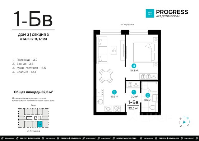 О компании: "Прогресс" — девелопер федерального уровня. Создаём современный стиль жизни с 2012 года. Совершенствуем культуру нашего общества. Предвосхищаем ваши ожидания. "Прогресс" - группа компаний полного цикла. Мы проектируем, строим и обслуживаем свои жилые комплексы. Входим в топ - 10 застройщиков по потребительским качествам ЖК по версии "Единый ресурс застройщиков". Мы - обладатель федеральных и европейских наград в сфере недвижимости: Urban Awards, European Property Awards, "Надёжный застройщик России" и др. Новый проект от создателей жилого квартала "Amundsen" "Progress Академический" - это место, где безопасно и уютно. Вы прочувствуете настоящую жизнь в режиме "здесь и сейчас". Удобная локация делает этот проект максимально привлекательным для тех, кто устал от суеты и ограниченных пространств. Безопасный благоустроенный двор, умные планировки и зонирование территории все это позволит почувствовать новый уровень комфорта. Соседство с лесным массивом, улучшает качество воздуха и создает уникальное экологически чистое окружение. Умные планировки. При проектировании дома наши архитекторы закладывают систему SMART- планировок: - Только разумное распределение полезной площади, которое отвечает реальным потребностям человека. Жители экономят деньги на протяжение всей жизни, ведь используется каждый уголок квартиры. - Несущие стены вынесены по периметру квартиры. Это дает возможность осуществлять перепланировку и реализовывать свои архитектурные идеи. - Все комнаты правильной формы, что упрощает расстановку мебели. Благоустроенные дворы. Наполнение двора детально продумано, с учетом потребностей каждого жителя. Детские площадки для разных возрастов, зоны отдыха, зеленые аллеи и пешеходные дорожки. В центре двора предусмотрен амфитеатр для общих встреч жителей и больших мероприятий. Собственная сервисная компания 24/7 поддерживает чистоту территории жилого квартала. Безопасность. Комплексная безопасность является одним из главных преимуществ. Проектом предусмотрено: закрытая придомовая территория без машин и круглосуточное видеонаблюдение без слепых зон, доступ через специальное мобильное приложение. Удобная локация. Инфраструктура обеспечит комфортную жизнь каждому. Это пространство с уникальной образовательной, спортивной и культурной инфраструктурой, необходимой для развития всесторонней личности. Парки и прогулочные зоны Продуктовые магазины "Пятерочка" и "Магнит" Тренажерные залы и фитнес-клубы 4 школы 9 детских садов Остановки общественного транспорта в 10 минутах ходьбы Технические преимущества: - система очистки водопроводной воды до питьевой - система телеметрии - установлены входные двери с тепло-шумоизоляцией - радиаторы отопления - наружные стены с встроенной шумоизоляцией - фасадная дренажная система позволяет избежать затопления фасадов и образования грязевых луж. Способы приобретения квартиры: • С помощью материнского капитала • В ипотеку Забронируйте квартиру по номеру телефона офиса продаж.