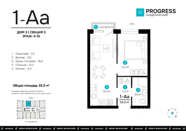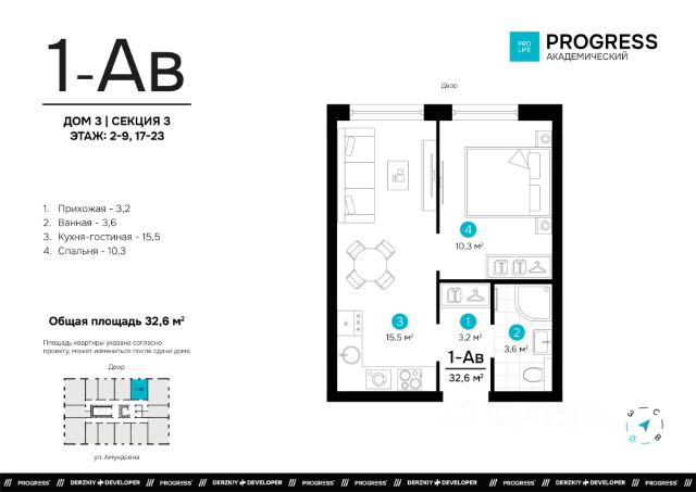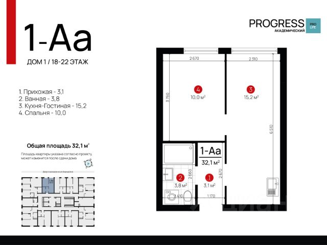 О компании: "Прогресс" — девелопер федерального уровня. Создаём современный стиль жизни с 2012 года. Совершенствуем культуру нашего общества. Предвосхищаем ваши ожидания. "Прогресс" - группа компаний полного цикла. Мы проектируем, строим и обслуживаем свои жилые комплексы. Входим в топ - 10 застройщиков по потребительским качествам ЖК по версии "Единый ресурс застройщиков". Мы - обладатель федеральных и европейских наград в сфере недвижимости: Urban Awards, European Property Awards, "Надёжный застройщик России" и др. Новый проект от создателей жилого квартала "Amundsen" "Progress Академический" - это место, где безопасно и уютно. Вы прочувствуете настоящую жизнь в режиме "здесь и сейчас". Удобная локация делает этот проект максимально привлекательным для тех, кто устал от суеты и ограниченных пространств. Безопасный благоустроенный двор, умные планировки и зонирование территории все это позволит почувствовать новый уровень комфорта. Соседство с лесным массивом, улучшает качество воздуха и создает уникальное экологически чистое окружение. Умные планировки. При проектировании дома наши архитекторы закладывают систему SMART- планировок: - Только разумное распределение полезной площади, которое отвечает реальным потребностям человека. Жители экономят деньги на протяжение всей жизни, ведь используется каждый уголок квартиры. - Несущие стены вынесены по периметру квартиры. Это дает возможность осуществлять перепланировку и реализовывать свои архитектурные идеи. - Все комнаты правильной формы, что упрощает расстановку мебели. Благоустроенные дворы. Наполнение двора детально продумано, с учетом потребностей каждого жителя. Детские площадки для разных возрастов, зоны отдыха, зеленые аллеи и пешеходные дорожки. В центре двора предусмотрен амфитеатр для общих встреч жителей и больших мероприятий. Собственная сервисная компания 24/7 поддерживает чистоту территории жилого квартала. Безопасность. Комплексная безопасность является одним из главных преимуществ. Проектом предусмотрено: закрытая придомовая территория без машин и круглосуточное видеонаблюдение без слепых зон, доступ через специальное мобильное приложение. Удобная локация. Инфраструктура обеспечит комфортную жизнь каждому. Это пространство с уникальной образовательной, спортивной и культурной инфраструктурой, необходимой для развития всесторонней личности. Парки и прогулочные зоны Продуктовые магазины "Пятерочка" и "Магнит" Тренажерные залы и фитнес-клубы 4 школы 9 детских садов Остановки общественного транспорта в 10 минутах ходьбы Технические преимущества: - система очистки водопроводной воды до питьевой - система телеметрии - установлены входные двери с тепло-шумоизоляцией - радиаторы отопления - наружные стены с встроенной шумоизоляцией - фасадная дренажная система позволяет избежать затопления фасадов и образования грязевых луж. Способы приобретения квартиры: • С помощью материнского капитала • В ипотеку Забронируйте квартиру по номеру телефона офиса продаж.