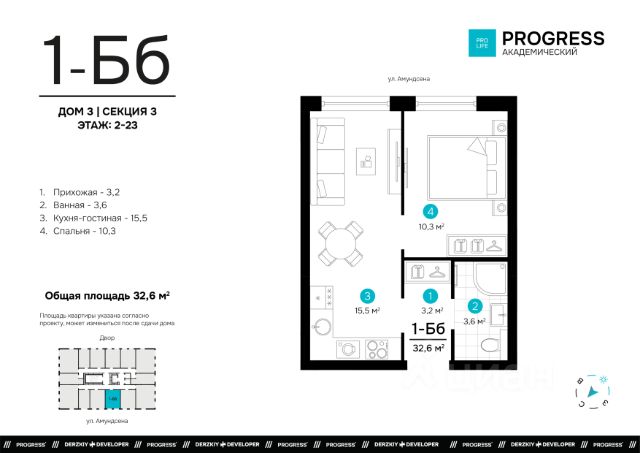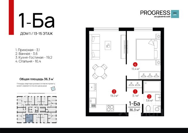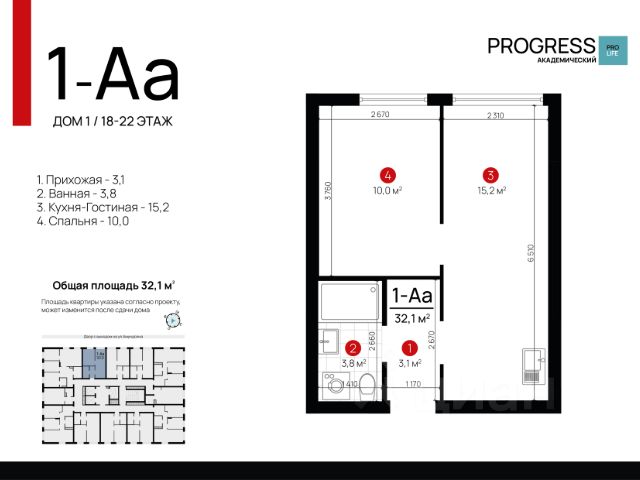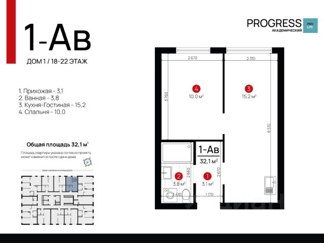 О компании: "Прогресс" — девелопер федерального уровня. Создаём современный стиль жизни с 2012 года. Совершенствуем культуру нашего общества. Предвосхищаем ваши ожидания. "Прогресс" - группа компаний полного цикла. Мы проектируем, строим и обслуживаем свои жилые комплексы. Входим в топ - 10 застройщиков по потребительским качествам ЖК по версии "Единый ресурс застройщиков". Мы - обладатель федеральных и европейских наград в сфере недвижимости: Urban Awards, European Property Awards, "Надёжный застройщик России" и др. Новый проект от создателей жилого квартала "Amundsen" "ПРОГРЕСС Академический" - это место, где безопасно и уютно. Вы прочувствуете настоящую жизнь в режиме "здесь и сейчас". Удобная локация делает этот проект максимально привлекательным для тех, кто устал от суеты и ограниченных пространств. Безопасный благоустроенный двор, умные планировки и зонирование территории все это позволит почувствовать новый уровень комфорта. Соседство с лесным массивом, улучшает качество воздуха и создает уникальное экологически чистое окружение. Умные планировки. При проектировании дома наши архитекторы закладывают систему SMART- планировок: - Только разумное распределение полезной площади, которое отвечает реальным потребностям человека. Жители экономят деньги на протяжение всей жизни, ведь используется каждый уголок квартиры. - Несущие стены вынесены по периметру квартиры. Это дает возможность осуществлять перепланировку и реализовывать свои архитектурные идеи. - Все комнаты правильной формы, что упрощает расстановку мебели. Благоустроенные дворы. Наполнение двора детально продумано, с учетом потребностей каждого жителя. Детские площадки для разных возрастов, зоны отдыха, зеленые аллеи и пешеходные дорожки. В центре двора предусмотрен амфитеатр для общих встреч жителей и больших мероприятий. Собственная сервисная компания 24/7 поддерживает чистоту территории жилого квартала. Безопасность. Комплексная безопасность является одним из главных преимуществ. Проектом предусмотрено: закрытая придомовая территория без машин и круглосуточное видеонаблюдение без слепых зон, доступ через специальное мобильное приложение. Удобная локация. Инфраструктура обеспечит комфортную жизнь каждому. Это пространство с уникальной образовательной, спортивной и культурной инфраструктурой, необходимой для развития всесторонней личности. Парки и прогулочные зоны Продуктовые магазины "Пятерочка" и "Магнит" Тренажерные залы и фитнес-клубы 4 школы 9 детских садов Остановки общественного транспорта в 10 минутах ходьбы Технические преимущества: - система очистки водопроводной воды до питьевой - система телеметрии - установлены входные двери с тепло-шумоизоляцией - радиаторы отопления - наружные стены с встроенной шумоизоляцией - фасадная дренажная система позволяет избежать затопления фасадов и образования грязевых луж. Способы приобретения квартиры: • С помощью материнского капитала • В ипотеку Забронируйте квартиру по номеру телефона офиса продаж.