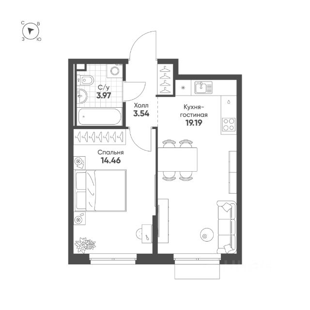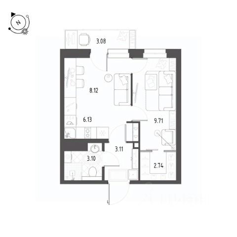 Удобная планировка, квартира зонирована на две части от застройщика (см.планировку)