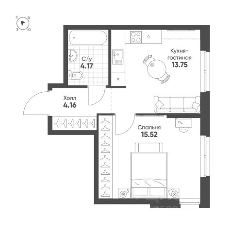 Продажа просторной однокомнатной квартиры в новом монолитно-кирпичном доме.