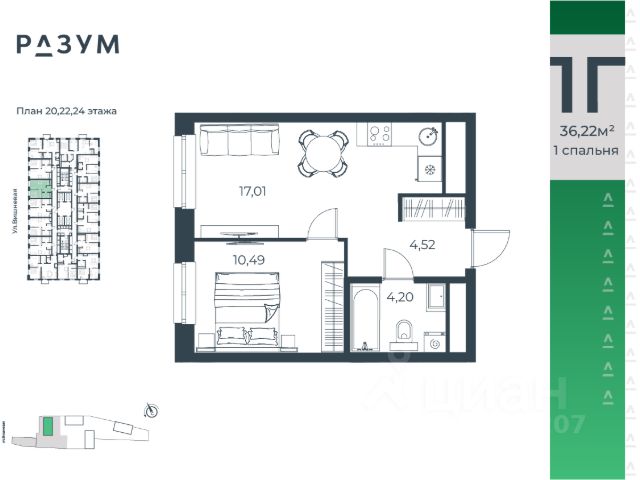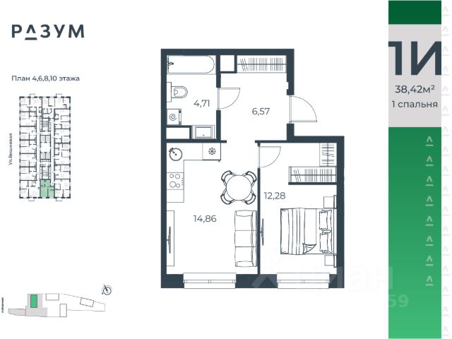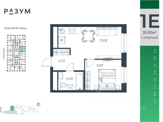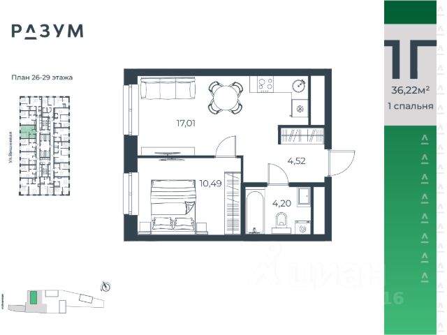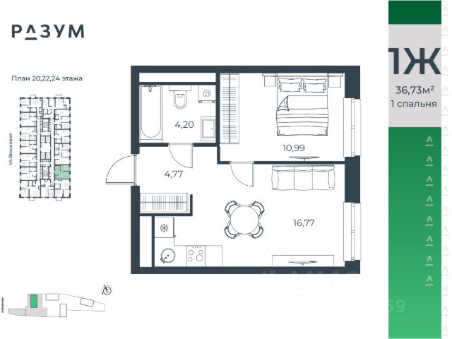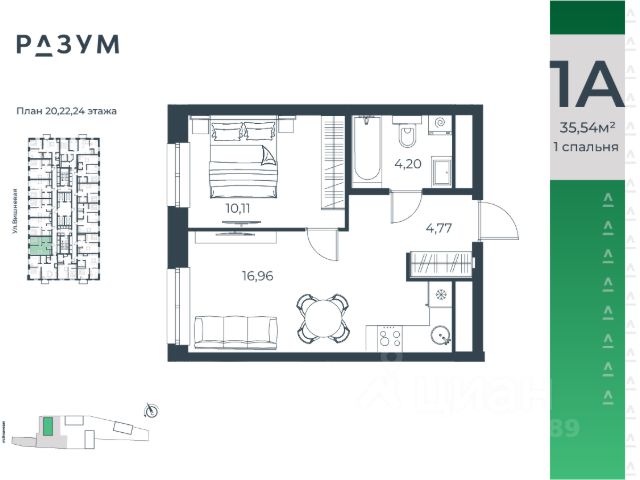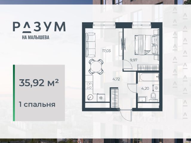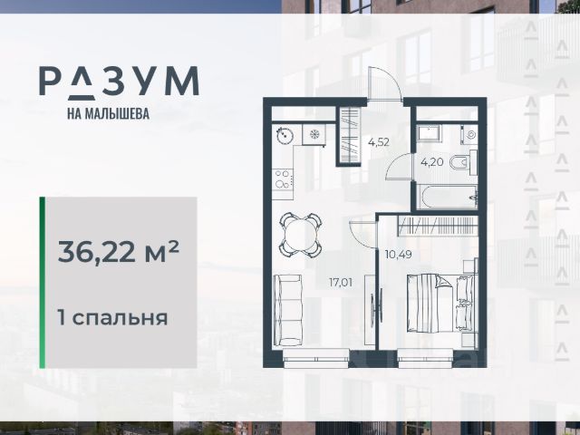 "РАЗУМ на Малышева" — новый проект от федерального девелопера с 12-летним опытом. Квартал расположен в самом сердце Екатеринбурга в Кировском районе. В шаговой доступности: 8 детских садов; 7 школ; прогулочные зоны и парки; магазины; учреждения профессионального образования. "РАЗУМ на Малышева" — это четыре 31-этажных башен на улице Малышева. Дополнительная приватность, безопасность и тишина создаётся за счёт возвышения домов на стилобате. Балконы на фасадах открывают виды на город и во двор, а угловые террасы открывают ещё больше простора и потрясающих видов. Жители квартала "РАЗУМ на Малышева" наслаждаются зелёными зонами круглый год. 60% территории занимает озеленение с деревьями, кустарниками и многолетниками. Здесь прогулки, отдых, работа и встречи с друзьями проходят в уютных зонах с перголами, шезлонгами и гамаками. "РАЗУМ на Малышева" — это: развитая инфраструктура; эргономичные и яркие архитектурные решения; дополнительный уровень спокойствия за счет возвышения на стилобате; во дворе высажены деревья и кустарники с учетом 4 сезонов; многоуровневое освещение; благоустройство; высокий уровень безопасности; стильные гранд-лобби и ресепшн; особые панорамные виды; собственная управляющая компания; собственный детский сад на 150 мест; четырёхэтажный паркинг; соседский центр место развития добрососедства; коммерческие помещения. Эргономичность и удобство в каждом квадратном метре — основа планировочных решений в квартале "РАЗУМ на Малышева". Для каждого сценария жизни найдется планировка: представлены десятки вариантов от 29,92 м² до 84,88 м². Квартиры с террасами размещены на верхних этажах домов. Терраса — это дополнительное пространство для слияния с природой.