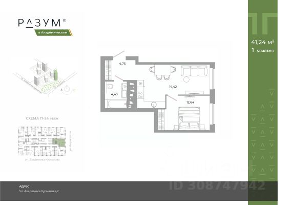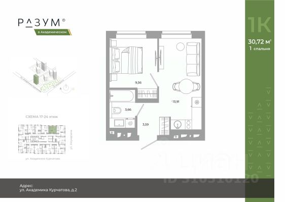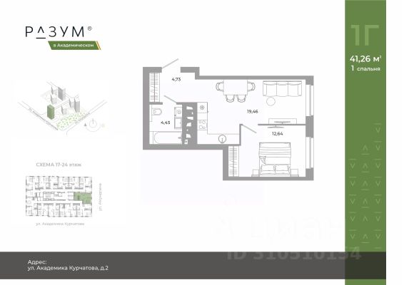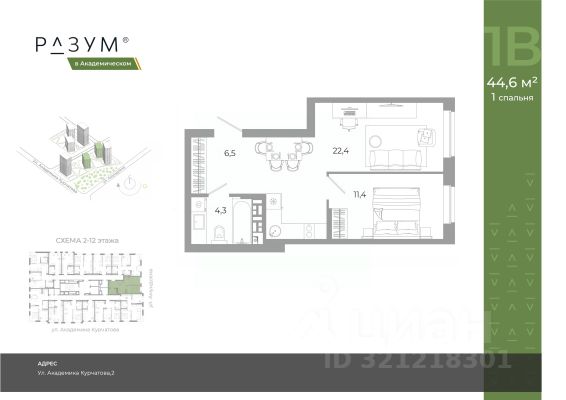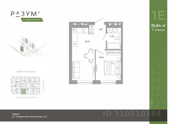 "РАЗУМ в Академическом" — это жилой комплекс из 7 домов переменной этажности от федерального девелопера "РАЗУМ" с 12-летним опытом создания жилых проектов. Дома от 12 до 24 этажей расположены в границах ул. Амундсена. В пешей доступности: - 6 школ; - 10 детских садов; - магазины; - поликлиники; - фитнес-залы. Рядом удобный выезд на ЕКАД. Главная особенность проекта — угловое остекление, которое составляет 22% всей площади. Окна в квартирах установлены в 60 см от пола. Увеличенная площадь остекления помогает снизить затраты на энергоресурсы и создаёт уют в квартире. Сердце жилого комплекса — приватный двор-парк с игровыми комплексами, тренажерами, площадками. "городские грядки" — новое решение благоустройства, где выращиваются ароматные травы или цветы. За пределами комплекса есть прогулочная зона с эко-тропой с вдохновляющими надписями. Прогулки по эко-тропе — это променады наедине с природой. "РАЗУМ в Академическом" — это: - территория без машин; - безбарьерная среда; - единый экостиль в оформлении дворового пространства; - 11 тематических зоны в двор-парке; - многоуровневое освещение и подсветка фасадов; - видеонаблюдение; - гостевой паркинг; - эстетичные подъездные холлы со сквозными подъездами и комфортной зоной ожидания; - Разделенные колясочные и велосипедные зоны; - Велосипедные на 1 этаже; - Кладовые помещения на каждом этаже и на -1 этаже. В проекте 25 планировочных решений: от уютных студий от 21,51 м² до квартир с тремя спальнями и кухней-гостиной до 66,58 м² с функциональным разделением на гостевую и приватные зоны.