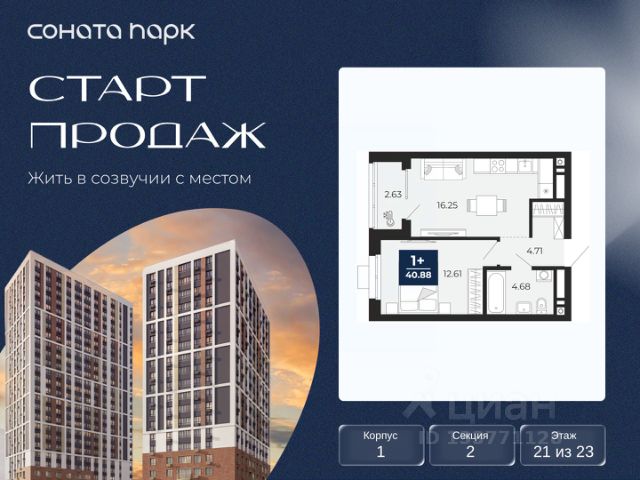 Успейте оформить бронирование по акционной цене, период предложения ограничен! Стоимость квартиры указана со скидкой, ваша экономия составит 534,345 руб. Информация по телефону, наши менеджеры вам все расскажут. Продается однокомнатная квартира с предчистовой отделкой в ЖК "Соната Парк" на 19 этаже. Общая площадь: 36.15 кв.м. Высота потолков 2.72 м. Дом монолитный, двухподъездный, переменной этажности, от 23 до 30 этажей. Квартира находится во 2-й секции высотой 23 этажа в корпусе 1. На этаже 11 квартир. В подъезде 1 пассажирский и 2 грузовых лифта. Окончание строительства - 4 квартал 2028 года. Оформление сделки по договору долевого участия. ЖК "Соната Парк" расположен в новом городском кластере "Аллея Романтиков" на Юго-Западе Екатеринбурга. Это район улиц Волгоградская Советских женщин Шаумяна Амудсена. Аллея объединяет разные кварталы застройщиков этой территории в единое целое. Чистые линии, интеллектуальная элегантность фасадов, игра света и тени это партитура, написанная архитектором. Благоустройство жилого комплекса это синтез искусства и природы. Поющие музыкальные инсталляции и поэтический променад. Оркестр растений: сирень, гортензии и яблони, чья цветущая палитра сменяется в течение года. Жизнь с готовой инфраструктурой Развитая транспортная доступность и социальная среда: уже сегодня рядом с домом детские сады, школы, парковые зоны, супермаркеты и рестораны в шаговой доступности. Технологии безопасности Для спокойствия жителей создана интеллектуальная система безопасности. Круглосуточный визуальный контроль обеспечивают профессиональная служба охраны, постоянно присутствующая на территории, и ситуационный центр. Система видеонаблюдения охватывает каждый уголок комплекса, исключая "слепые" зоны. Чёткое зонирование и навигация дополняют картину полного порядка. Дизайнерские подъезды Стилистика подъездов продолжает концепцию "Соната Парка", вдохновлённого музыкальной симфонией: сдержанный, но при этом впечатляющий дизайн соседствует с удобством и функциональностью. В подъезде вас встречает музыка, создавая особую атмосферу с первых секунд. Светлые и стильные входные группы с панорамным остеклением наполняют пространство светом, добавляя ему современной эстетики и ощущения безопасности. Аллея Романтиков Проект органично вписан в масштабный пешеходный кластер "Аллея Романтиков" — уникальное общегородское пространство, которое уже сегодня называют будущей альтернативой главным прогулочным улицам города. Это многофункциональный бульвар протяжённостью 1 километр, где всё создано для вдохновения и отдыха. Это "зелёное сердце" территории, которое объединит кварталы разных застройщиков в единую гармоничную среду. Здесь будут назначать свидания, гулять с семьёй, встречаться с друзьями и просто наслаждаться моментом. Линейка ремонтов Ремонт с капсульной меблировкой — когда всё готово к жизни. Мы соединили качественный ремонт и продуманную меблировку в одном флаконе. Словно "с иголочки", новая кварти