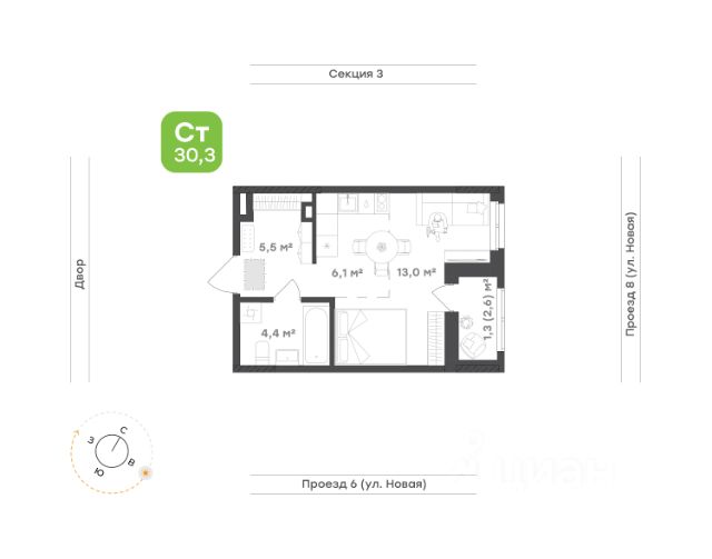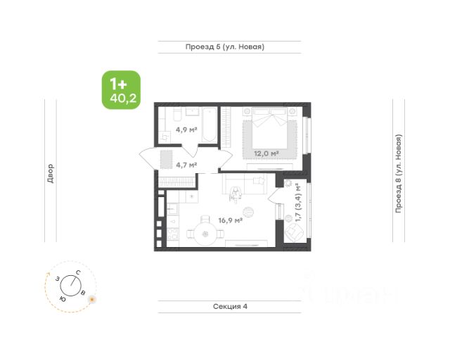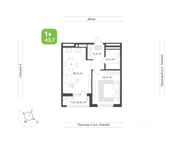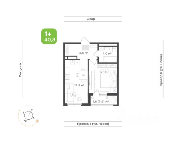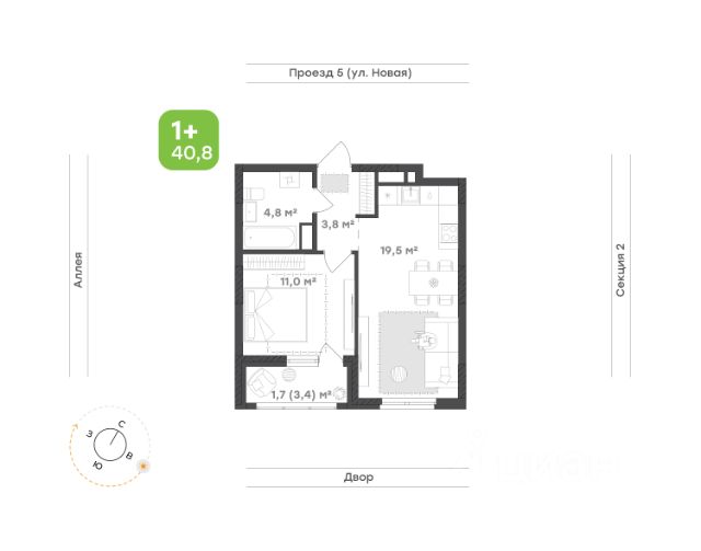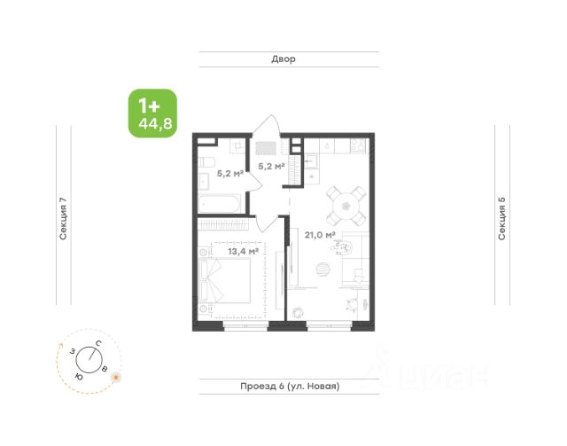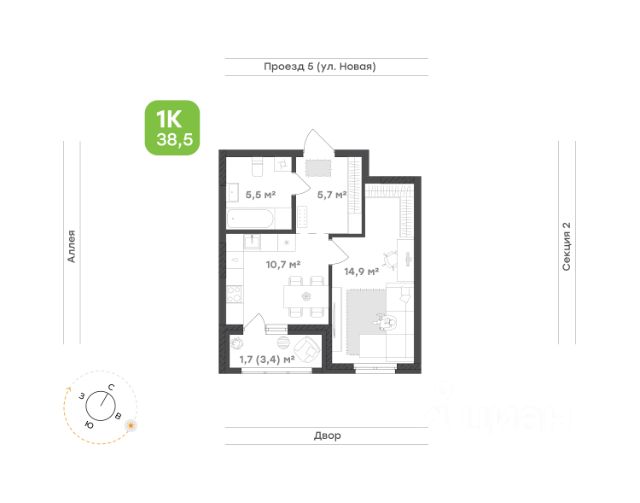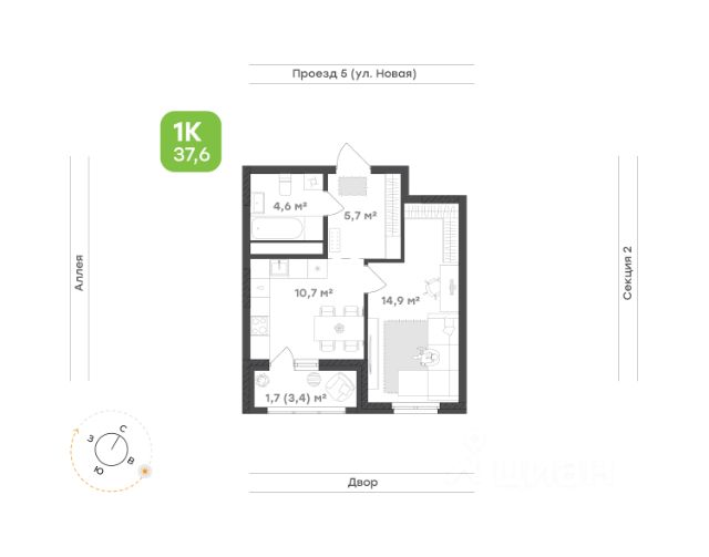 Идеальный выбор для тех, кто ценит личную свободу и функциональность Просторная кухня 10,7 м² станет местом для создания вдохновляющих кулинарных шедевров и тёплых встреч с друзьями Изолированная комната 14,9 м² обеспечивает личное пространство для отдыха и восстановления. Здесь достаточно места для большой кровати, системы хранения и рабочего уголка Современный санузел 4,6 м² отличается удобством планировки, а просторная прихожая 5,7 м² позволяет организовать функциональную зону хранения Лоджия 3,4 м² с панорамным остеклением станет прекрасным местом для отдыха или эстетичным уголком для чашечки утреннего кофе