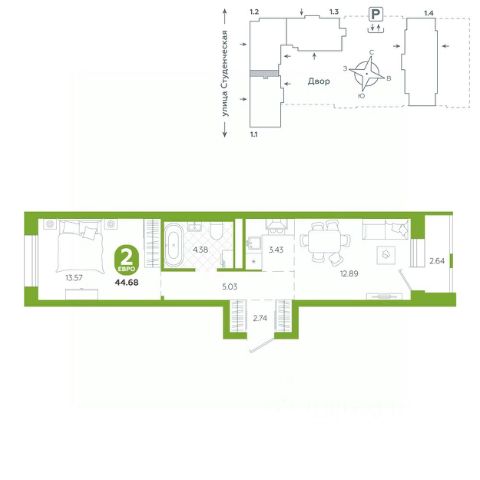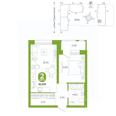Квартира в семейном жилом комплексе комфорт-класса "Тёплые кварталы" на границе Пионерского микрорайона и Втузгородка в Екатеринбурге. В данном районе сосредоточено большое количество знаменитых вузов, поликлиники, культурно-спортивные центры. Детский сад находится во дворе второго дома жилого комплекса. Дома переменной этажности в едином стиле образуют современный эстетичный квартал, на территории которого будет безопасно и интересно. Двор закрыт от машин и посторонних - доступ только для жителей по электронному ключу, видеонаблюдение 24/7. Дизайн двора выполнен в экостиле - из натуральных материалов. Качели, горки и скамейки выполнены в природных оттенках. Во дворе дети смогут придумывать всевозможные сценарии игр. Для родителей есть тихая лаундж-зона и места для занятий спортом. Озеленение сделает двор всесезонным - будут высажены пихты, яблони, можжевельник и гортензии. Для домов ЖК "Тёплые кварталы" предусмотрена отдельная котельная. Это позволит экономить на коммунальных платежах и пользоваться горячей водой без перебоев круглый год. Кирпичный дом отличается высокой энергоэффективностью и долговечностью, а также широкими подоконниками, которые не встретить в монолитных домах. Предусмотрен подземный паркинг и кладовые. Срок сдачи 3 квартал 2026 г. этаж - 1 количество комнат - 2 номер помещения - 303 площадь квартиры - 42,63 кв.м высота потолка - 2,85 м Квартира разработана с акцентом на удобство и практичность. Спальня создает атмосферу для спокойного отдыха, а ванная комната оснащена всеми необходимыми удобствами. Благодаря большим окнам все помещения хорошо освещены и идеально подходят для расстановки мебели. Планировка кухни позволяет эффективно зонировать пространство. Приобрести квартиру можно с предчистовой отделкой или с готовым ремонтом.
