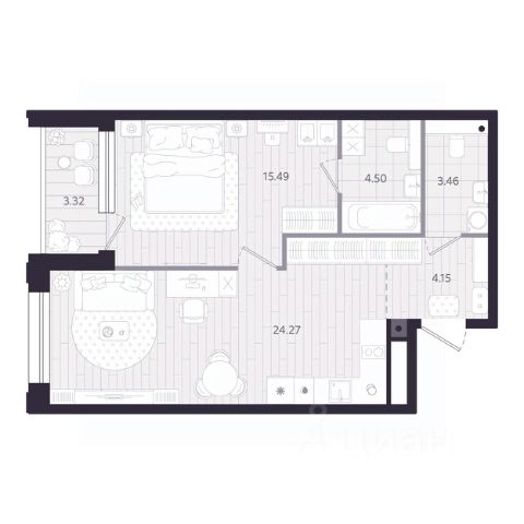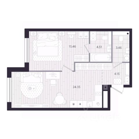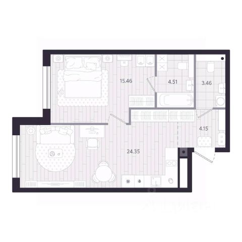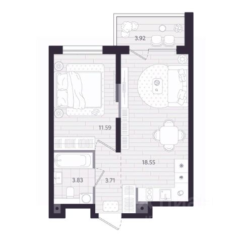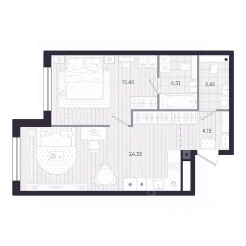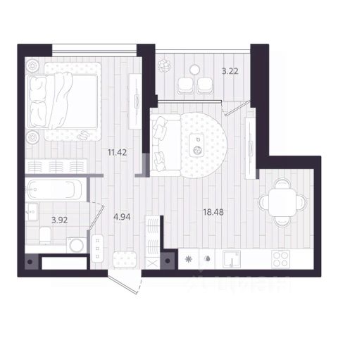 Продаётся 1-комнатная квартира в строящемся доме (Дом 1.1), срок сдачи: II-кв. 2028, общей площадью 43.92 кв.м., на 22 этаже. Новый жилой комплекс "Тетро" от застройщика "Люди" расположен по адресу: г. Екатеринбург, улица Героев России.