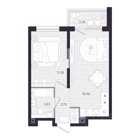 Продаётся 1-комнатная квартира в строящемся доме (Дом 1.1), срок сдачи: II-кв. 2028, общей площадью 41.59 кв.м., на 12 этаже. Новый жилой комплекс "Тетро" от застройщика "Люди" расположен по адресу: г. Екатеринбург, улица Героев России.
