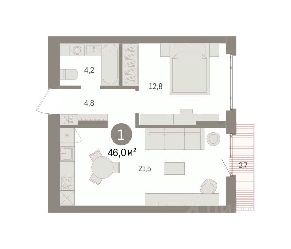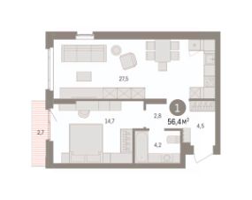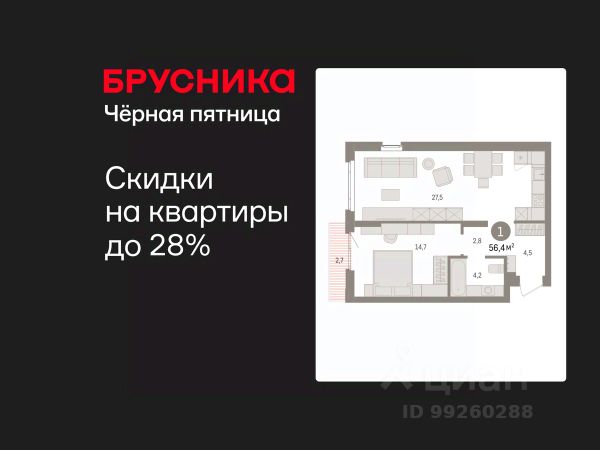 Торопитесь оформить бронирование по акционной цене! Период предложения ограничен! Стоимость квартиры указана со скидкой, ваша экономия составит 350,000 RUB. По всем вопросам обращайтесь в офис продаж, наши менеджеры вам все расскажут! Продается однокомнатная квартира с предчистовой отделкой в ЖК "Квартал Траектория" на 3 этаже. Общая площадь: 56.4 кв.м., жилая: 14.7 кв.м., площадь просторной кухни-столовой: 27.5 кв.м. Квартира угловая, идеально подойдет любителям тишины и панорамных видов. В квартире один балкон, один совмещенный санузел. Высота потолков 2.82 м. Дом монолитный, многоподъездный, переменной этажности, от 7 до 16 этажей. Квартира находится в 1-й секции высотой 16 этажей в корпусе 1-2. На этаже 6 квартир. В подъезде 1 пассажирский и 1 грузовой лифт. Начало строительства - 4 квартал 2025 года. Окончание строительства - 4 квартал 2027 года. Оформление сделки по договору долевого участия. Квартира с кухней-гостиной и одной спальней в квартале "Траектория". Особенности планировки: стартовая цена, предчистовая отделка, балкон. квартиры в нашей базе: МНВ01-Ж9.3.5. Квартал "Траектория" строится в границах улиц Билимбаевской, Расточной, Монтажников и Маневровой Раньше здесь находился оборонный завод 5-ЦАРЗ, основанный в 1945 году. После войны он ремонтировал военную и грузовую технику — от "Виллисов" и "Студебекеров" до советских ЗИС-5 и ГАЗ-67. Сортировка — район с развитой инфраструктурой, обжитыми жилыми кварталами разных эпох и большим количеством парков. До центра Екатеринбурга — 20 минут на машине. Туда же можно отправиться на автобусе: ближайшая остановка общественного транспорта — в 4 минутах от "Траектории". Рядом с "Траекторией" расположены магазины, торговый центр, детские сады, школы, поликлиники и полезные сервисы, а также другой проект Брусники — квартал "Депо". Если хочется развлечений, можно отправиться в ТРЦ "Карнавал" и парк с аттракционами "Таганская слобода" — дорога туда займёт не более 10 минут на машине. Квартал "Траектория" — первый этап комплексного развития территории, которую раньше занимали производственные здания. На месте бывших цехов Брусника создаст дружелюбную среду и комфортное пешеходное пространство для всего района. Для озеленения квартала мы подобрали больше 60 видов растений: ольху, липу, клён, иву, грушу, вишню, сирень, барбарис, гортензию, смородину, ирис, декоративные травы. Они цветут в разное время года и постоянно меняют настроение двора. В "Траектории" мы предусмотрели несколько общественных пространств, открытых для всех горожан: встречающий сквер, лесопарк у храма и событийный сквер между домами. Когда захочется тишины и уединения, можно устроить прогулку во внутренних дворах: в них нет машин и посторонних, зато много зелени, света и мест для отдыха. Каждый двор в квартале "Траектория" — продолжение квартиры, только под открытым небом. Здесь можно прогуляться босиком по траве, устроить утреннюю йогу, почитать книгу в гамаке или отправить детей поиграть, не переживая за