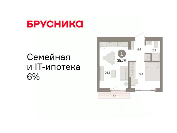 Просторная 1-комн. квартира с предчистовой отделкой в ЖК "Квартал Траектория" на 5 этаже. Общая площадь: 35.7 кв.м., жилая: 9.6 кв.м., площадь просторной кухни-столовой: 16.2 кв.м. Все окна выходят на одну сторону. В квартире один балкон, один совмещенный санузел. Высота потолков 2.82 м. Дом монолитный, многоподъездный, переменной этажности, от 7 до 25 этажей. Квартира находится в 8-й секции высотой 7 этажей в корпусе 1-1. На этаже 3 квартиры. В подъезде 1 грузовой лифт. Начало строительства - 4 квартал 2025 года. Окончание строительства - 4 квартал 2027 года. Оформление сделки по договору долевого участия. Квартира с кухней-гостиной и одной спальней в квартале "Траектория". Особенности планировки: балкон, предчистовая отделка. квартиры в нашей базе: МНВ01-Ж8.5.1. Квартал "Траектория" строится в границах улиц Билимбаевской, Расточной, Монтажников и Маневровой Раньше здесь находился оборонный завод 5-ЦАРЗ, основанный в 1945 году. После войны он ремонтировал военную и грузовую технику — от "Виллисов" и "Студебекеров" до советских ЗИС-5 и ГАЗ-67. Сортировка — район с развитой инфраструктурой, обжитыми жилыми кварталами разных эпох и большим количеством парков. До центра Екатеринбурга — 20 минут на машине. Туда же можно отправиться на автобусе: ближайшая остановка общественного транспорта — в 4 минутах от "Траектории". Рядом с "Траекторией" расположены магазины, торговый центр, детские сады, школы, поликлиники и полезные сервисы, а также другой проект Брусники — квартал "Депо". Если хочется развлечений, можно отправиться в ТРЦ "Карнавал" и парк с аттракционами "Таганская слобода" — дорога туда займёт не более 10 минут на машине. Квартал "Траектория" — первый этап комплексного развития территории, которую раньше занимали производственные здания. На месте бывших цехов Брусника создаст дружелюбную среду и комфортное пешеходное пространство для всего района. Для озеленения квартала мы подобрали больше 60 видов растений: ольху, липу, клён, иву, грушу, вишню, сирень, барбарис, гортензию, смородину, ирис, декоративные травы. Они цветут в разное время года и постоянно меняют настроение двора. В "Траектории" мы предусмотрели несколько общественных пространств, открытых для всех горожан: встречающий сквер, лесопарк у храма и событийный сквер между домами. Когда захочется тишины и уединения, можно устроить прогулку во внутренних дворах: в них нет машин и посторонних, зато много зелени, света и мест для отдыха. Каждый двор в квартале "Траектория" — продолжение квартиры, только под открытым небом. Здесь можно прогуляться босиком по траве, устроить утреннюю йогу, почитать книгу в гамаке или отправить детей поиграть, не переживая за их безопасность. Мы закроем дворы от машин, чтобы создать безопасную среду для отдыха. Применим натуральные материалы в отделке малых архитектурных форм — дерево, камень, металл без лишней обработки. Внутри каждого двора — детские площадки, перголы с тенистыми зонами, мягкие газоны и места для общения с соседям