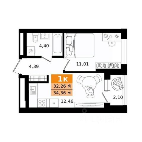 • ✓ Минимальная площадь: 34 м²