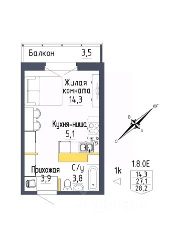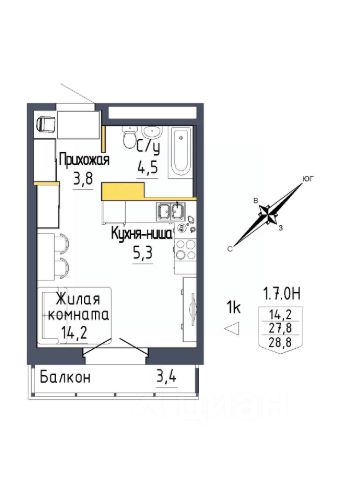 Арт. 114949661 Предлагается к покупке однокомнатная квартира площадью 35, 1 м2 в Орджоникидзевском районе по адресу Тюльпановая дом 11.