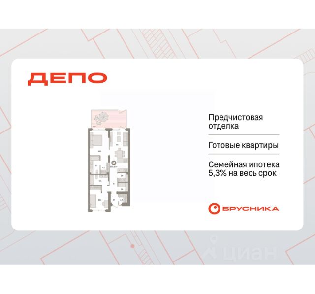 Квартира с кухней-гостиной и двумя спальнями в квартале "Депо". Особенности планировки: гардеробная, мастер-спальня, постирочная, предчистовая отделка, разнесённые спальни. квартиры в нашей базе: ДЕП07-Ж1.2.6. Квартал "Депо" расположен в активно развивающейся части Сортировки, на месте, где раньше был завод "Электротранс". Преимущества Сортировки — развитая инфраструктура. В пешей доступности — супермаркеты, остановки городского транспорта, поликлиники, детские сады, школы, гимназии, торговые центры, автоцентры, рынок с большим и доступным по стоимости выбором товаров, парк РЖД и парк с аттракционами Таганская Слобода. Квартал "Депо" расположен в границах улиц Пехотинцев — Таватуйская — Сортировочная — Новая (проектируется). Благоустройство квартала основано на трёх принципах. Первый — особое внимание к воде. Архитекторы Брусники создадут внутри застройки систему дождевых садов, которые будут фильтровать сток (в том числе с крыш зданий) и снижать нагрузку на ливневую канализацию . Второй принцип — разнообразие. Мы высадим на улицах ивы, липы, яблони разных сортов, спиреи, лапчатку и дерен, а во дворах — березы, липы, черёмухи, пузыреплодник, кизильник и манчжурский орех, который в Екатеринбурге почти не представлен. Третий принцип — зонирование. Центральный бульвар мы насытим площадками для игр детей и спокойного отдыха взрослых, на площади перед детским садом расположим окруженные деревьями плэйхабы, летние веранды кафе, открытое пространство с запоминающимся артом. #ZsCMec Продам 2-комнатную квартиру 100 м2 (квадратных метров) в Екатеринбурге.