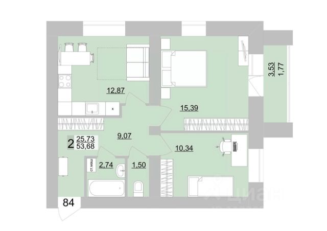 Хорошая тепло/шумо изоляция. Общая площадь всех помещений 59,4 м2. Квартира полностью укомплектована и готова к проживанию.