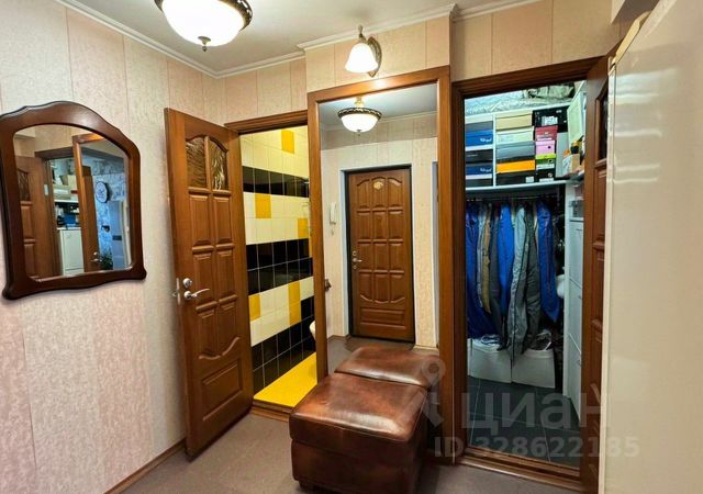 В прихожей органично вписалась зона постирочной и хозинвентаря и глубокий, вместительный шкаф-купе, они полностью остаются в квартире.
