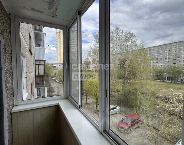 Квартира расположена на 9 этаже 23-этажного дома, из окон открывается вид на улицу в сторону гипермаркета Лента.