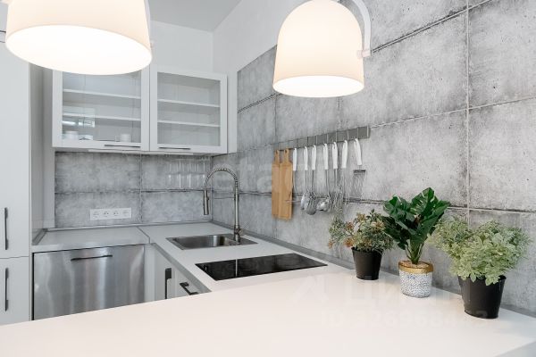 Общая площадь составляет 57,2 квадратных метров, включая две комнаты площадью 10,30 и 10,20 кв. м., кухню-столовую 18,90 кв.м., совмещённый санузел - 4,40 кв. м., санузел - 1,80 кв. м., коридор - 11,60 кв.м; высота потолков достигает 2,72 метра. Внутренняя отделка предусматривает подготовку стен и полов перед финишной отделкой. Из окон открывается вид на променадную улицу.