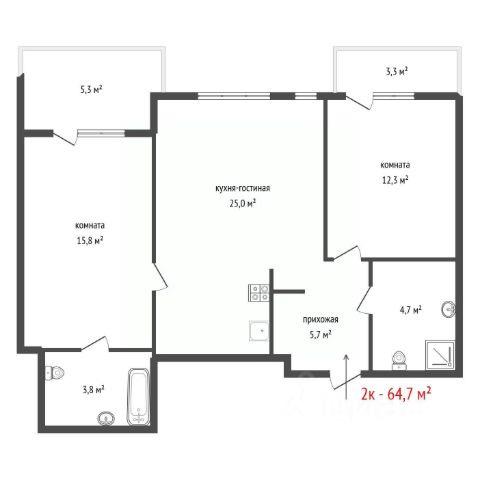 Общая площадь - 59,29 м2