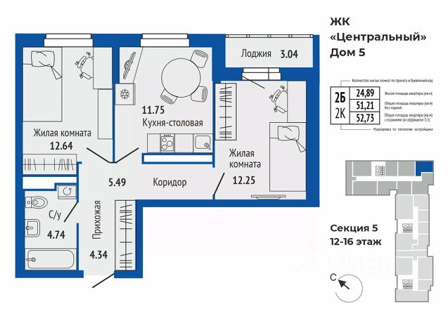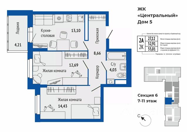 Продается 2-к квартира в жилом комплексе Центральный 5