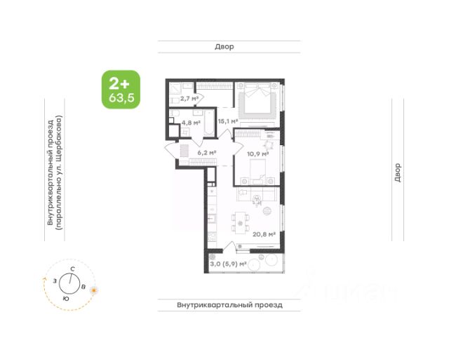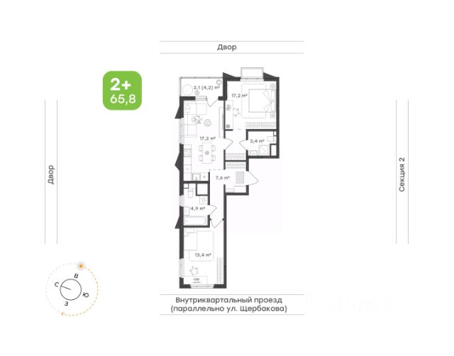 • Облагороженная закрытая придомовая территория, детские и спортивные площадки, места для отдыха, двор без машин.