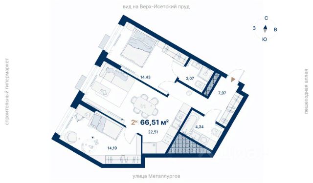 Продаётся 2-комнатная квартира в строящемся доме (Дом 1 секции 1-5), срок сдачи: II-кв. 2026, общей площадью 65 кв.м., на 10 этаже. Дом комфорт-класса на песчаном берегу Верх-Исетского пруда. Новый жилой комплекс комфорт-класса "Белый Парус" расположен на первой береговой линии . Верх-Исетского пруда в тихом месте с песчаным пляжем и буйной растительностью вдали от душных городских улиц. Для такого уникального дома не случайно архитектором стал один из признанных мастеров Тимур Абдуллаев - в недавнем прошлом главный архитектор Екатеринбурга, основатель архитектурной группы Информ и создатель проекта "Школа главного архитектора". Начало целого квартала на берегу Жилой комплекс "Белый парус" стал началом строительства целого квартала в прибрежной зоне Верх-Исетского пруда. Здесь будет создана уникальная среда как для горожан, так и жителей квартала, разработанная в гармонии с окружающей природой. Вечерами солнце, заходящее за горизонт, навевает ощущение, будто вы живете на морском побережье, а не в современном мегаполисе. Здесь появится уникальное и комфортное место для отдыха, общения, спорта, танцев и даже работы. В ближайшем будущем на территории появятся благоустроенная набережная, объекты городской инфраструктуры и атрибуты загородных и пляжных развлечений. Дом, созданный в гармонии с окружающей средой Жилой комплекс находится всего в 15 минутах от центра Екатеринбурга, а сам район отличается развитой инфраструктурой. Рядом все нужное: остановки общественного транспорта, сетевые магазины, кафе и рестораны, медицинские услуги и велнес, а также детские сады и школы. При желании за покупками можно отправиться в центральные гипермаркеты и торгово-развлекательные комплексы, такие как "Радуга парк", "Алатырь" или "Гринвич". В ЖК "Белый парус" каждый найдет то, ради чего захочется остаться: из окон открывается прекрасный вид на Верх-Исетский пруд и на город, которым приятно любоваться по утрам, сидя с чашечкой кофе. А любителей активного образа жизни ждет простор для занятий спортом или неторопливых вечерних прогулок у воды - прямо с территории дома для жителей будет оборудован собственный выход на пирс. Минималистичный дизайн Сам дом будет выполнен в минималистичном дизайне, который подчеркнет статус жилья комфорт-класса: каждая деталь дома продумана до мелочей, а его стиль подчеркивают изящные геометрические линии, современные архитектурные формы и сдержанные цвета. Двор, где каждый найдет дело по душе Отдельного внимания заслуживает дворовая территория будущего комплекса, ведь досуг жителей - это одна из самых значимых отличительных особенностей жилья комфорт-класса. В ЖК "Белый Парус" будет создан благоустроенный двор с пешеходными и велосипедными дорожками, местами для отдыха и занятий спортом. В дворе расположатся площадки с самыми современными игровыми комплексами для детей разных возрастов, спроектированными для всестороннего физического и интеллектуального развития. Для взрослых жителей запроектированы комфортные зоны отды