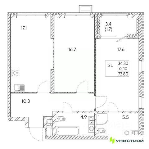 Квартира находится в ЖК "Бодровский" от федерального застройщика "Паритет Девелопмент". Это жилой комплекс комфорт-класса с современной архитектурой, расположенный в Екатеринбурге в районе улиц Патриса Лумумбы и 2-й Новосибирской. Добраться от него до центра города можно всего за 25 минут, дорога до ЕКАДа займет 12 минут. В окружении жилого комплекса есть шесть детских садов, пять школ, три больших парка, пять спорткомплексов, в том числе курортный комплекс Уктус. Квартал состоит из двух секций переменной этажности (от 14 до 24 этажей) и подземного паркинга с кладовыми, к которым можно будет спуститься на лифте. На первых этажах предусмотрены коммерческие помещения: жители смогут сделать маникюр, воспользоваться услугами ателье, выпить кофе с круассаном, не покидая своего района. Ввод в эксплуатацию в III кв. 2027 года. Территория комплекса огорожена от машин и посторонних людей. Озеленение с многолетними растениями и деревьями создает ощущение близости к природе. Двор наполнен всем необходимым: песочницы и качели для самых маленьких, интерактивная башня для детей постарше, воркаут-зона и места для отдыха. На всей территории реализована безбарьерная среда. В парадных выполнен авторский ремонт. За счет панорамного остекления и 4-метровых потолков там всегда много естественного света. Предусмотрены колясочные с местами для хранения спортинвентаря и креплениями для велосипедов. В проекте представлены студии, классические одно- и двухкомнатные варианты, а также двух-, трех- и четырехкомнатные квартиры в евроформате площадью от 25,32 до 76,65. Все планировки — функциональные и подходящие новоселам как с детьми, так и без них. Есть варианты с лоджиями, где можно организовать дополнительное пространство для отдыха, спорта или работы, а еще квартиры с мастер-спальней, гардеробной, двумя санузлами. В каждой предусмотрена вытяжная вентиляция с естественным побуждением, счетчики с телеметрией и корзины для кондиционеров. Характеристики квартиры: этаж - 10 количество комнат - 2 номер помещения - 247 площадь квартиры - 35,52 кв.м Чтобы сэкономить время и деньги, можно приобрести квартиру сразу с ремонтом от застройщика. На выбор 3 конфигурации: базовый, с кухонным гарнитуром, с кухонным гарнитуром и другой мебелью - в светлом и темном оттенках. Ремонт можно включить в ипотеку.