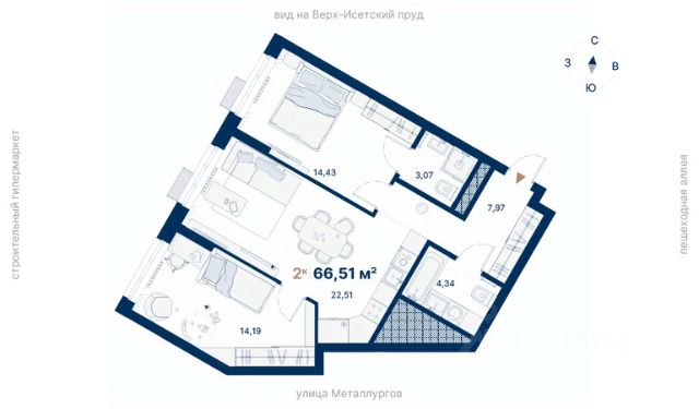 Квартира бизнес-класса в ЖК "Русь XXI" на ВИЗе от застройщика TEN девелопмент! Ключи во 2 квартале 2027 года. ЖК "Русь XXI" - это 10-секционный дом высотой от 7 до 18 этажей, из окон которого открываются вдохновляющие виды на Верх-Исетский пруд и огни мегаполиса. Двор-сад Двор закрыт от машин и посторонних, при этом на территории всегда много света и пространства благодаря разнице высот дома. Богатое озеленение, разнообразная геопластика, детские игровые и спортивная площадки, зоны для отдыха - все, чтобы каждому жителю было приятно проводить здесь время. Контроль доступа, видеонаблюдение и круглосуточная охрана обеспечат безопасность для себя и близких. Эстетика и комфорт Входные группы прозрачные и сквозные, расположены на уровне тротуара, чтобы было удобно завозить коляску или велосипед. Холлы оформлены в едином стиле - светлые пространства с отделкой под дерево и камень. Для удобства каждого жителя здесь есть мягкие и коворкинг-зоны, колясочная и лапомойка. Для автолюбителей - подземный паркинг. Настоящая свобода Большая площадь и высота потолка 3 м сделает квартиру визуально еще просторнее. При таких размерах гораздо проще подобрать оптимальный вариант дизайна интерьера для любой семьи. Отделка под чистовую. В санузле — монолитный потолок, на полу — гидроизоляция и стяжка, стены оштукатурены. В одном санузле установлены унитаз и раковина. В остальных помещениях потолок — монолит, на полу — стяжка, стены оштукатурены. Выгодные условия оплаты: - акционные предложения - ипотека от ведущих банков, семейная ипотека - рассрочка от застройщика - трейд-ин Звоните или оставляйте заявку, чтобы узнать больше и забронировать квартиру!