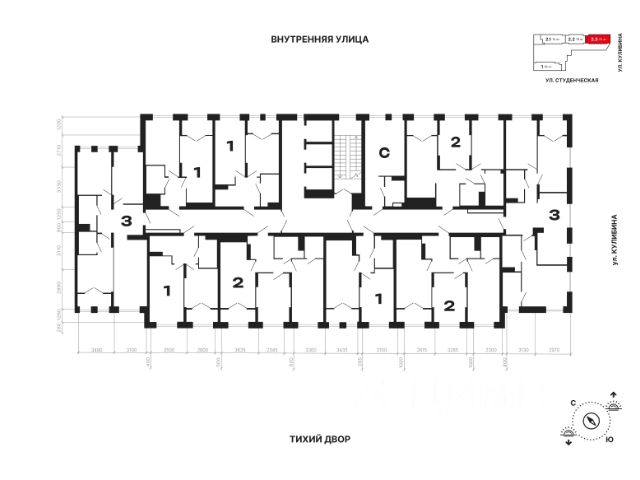 Квартира 115 в подъезде 1. Квартал, в котором рациональность соединяется с творчеством, а архитектурная выразительность — с современными технологиями комфорта. Эффективные планировки, двор-сад без машин, двухуровневая подземная парковка и коммерческие помещения на первых этажах создают функциональную основу комплекса. Статус подчеркивает парадный вестибюль с ресепшн, а художественные акценты в общественных пространствах формируют атмосферу, вдохновляющую на новые идеи.