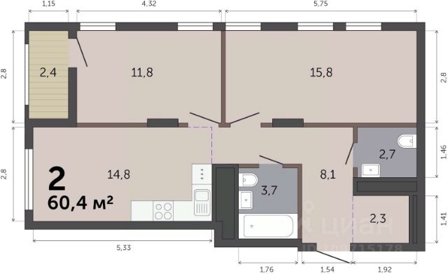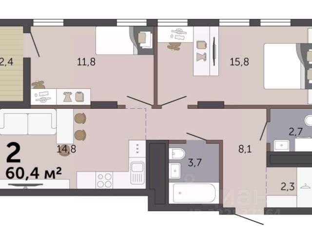 Продаётся 2-комнатная квартира в строящемся доме (Дом 6), срок сдачи: III-кв. 2027, общей площадью 52.1 кв.м., на 13 этаже. Расположение, транспортная доступность