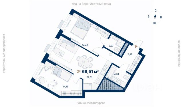 Квартира бизнес-класса в ЖК "Русь XXI" на ВИЗе от застройщика TEN девелопмент! Ключи во 2 квартале 2027 года. ЖК "Русь XXI" - это 10-секционный дом высотой от 7 до 18 этажей, из окон которого открываются вдохновляющие виды на Верх-Исетский пруд и огни мегаполиса. Двор-сад Двор закрыт от машин и посторонних, при этом на территории всегда много света и пространства благодаря разнице высот дома. Богатое озеленение, разнообразная геопластика, детские игровые и спортивная площадки, зоны для отдыха - все, чтобы каждому жителю было приятно проводить здесь время. Контроль доступа, видеонаблюдение и круглосуточная охрана обеспечат безопасность для себя и близких. Эстетика и комфорт Входные группы прозрачные и сквозные, расположены на уровне тротуара, чтобы было удобно завозить коляску или велосипед. Холлы оформлены в едином стиле - светлые пространства с отделкой под дерево и камень. Для удобства каждого жителя здесь есть мягкие и коворкинг-зоны, колясочная и лапомойка. Для автолюбителей - подземный паркинг. Настоящая свобода Большая площадь и высота потолка 3 м сделает квартиру визуально еще просторнее. При таких размерах гораздо проще подобрать оптимальный вариант дизайна интерьера для любой семьи. Отделка под чистовую. В санузле — монолитный потолок, на полу — гидроизоляция и стяжка, стены оштукатурены. В одном санузле установлены унитаз и раковина. В остальных помещениях потолок — монолит, на полу — стяжка, стены оштукатурены. Выгодные условия оплаты: - акционные предложения - ипотека от ведущих банков, семейная ипотека - рассрочка от застройщика - трейд-ин Звоните или оставляйте заявку, чтобы узнать больше и забронировать квартиру!