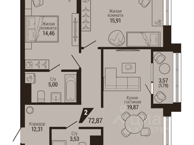 Квартира бизнес-класса в ЖК "Русь XXI" на ВИЗе от застройщика TEN девелопмент! Ключи во 2 квартале 2027 года. ЖК "Русь XXI" - это 10-секционный дом высотой от 7 до 18 этажей, из окон которого открываются вдохновляющие виды на Верх-Исетский пруд и огни мегаполиса. Двор-сад Двор закрыт от машин и посторонних, при этом на территории всегда много света и пространства благодаря разнице высот дома. Богатое озеленение, разнообразная геопластика, детские игровые и спортивная площадки, зоны для отдыха - все, чтобы каждому жителю было приятно проводить здесь время. Контроль доступа, видеонаблюдение и круглосуточная охрана обеспечат безопасность для себя и близких. Эстетика и комфорт Входные группы прозрачные и сквозные, расположены на уровне тротуара, чтобы было удобно завозить коляску или велосипед. Холлы оформлены в едином стиле - светлые пространства с отделкой под дерево и камень. Для удобства каждого жителя здесь есть мягкие и коворкинг-зоны, колясочная и лапомойка. Для автолюбителей - подземный паркинг. Настоящая свобода Большая площадь и высота потолка 3 м сделает квартиру визуально еще просторнее. При таких размерах гораздо проще подобрать оптимальный вариант дизайна интерьера для любой семьи. Отделка под чистовую. В санузле — монолитный потолок, на полу — гидроизоляция и стяжка, стены оштукатурены. В одном санузле установлены унитаз и раковина. В остальных помещениях потолок — монолит, на полу — стяжка, стены оштукатурены. Выгодные условия оплаты: - акционные предложения - ипотека от ведущих банков, семейная ипотека - рассрочка от застройщика - трейд-ин Звоните или оставляйте заявку, чтобы узнать больше и забронировать квартиру!