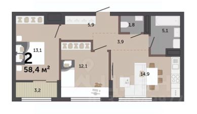 • ✓ В базе Циан 4 2-комнатных квартир на 14 этаже в микрорайоне УНЦ в городе Екатеринбург