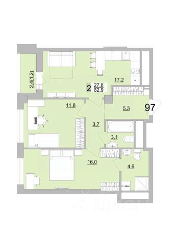 • ✓ В базе Циан 63 2-комнатных квартир на 14 этаже в районе Верх-Исетский в городе Екатеринбург