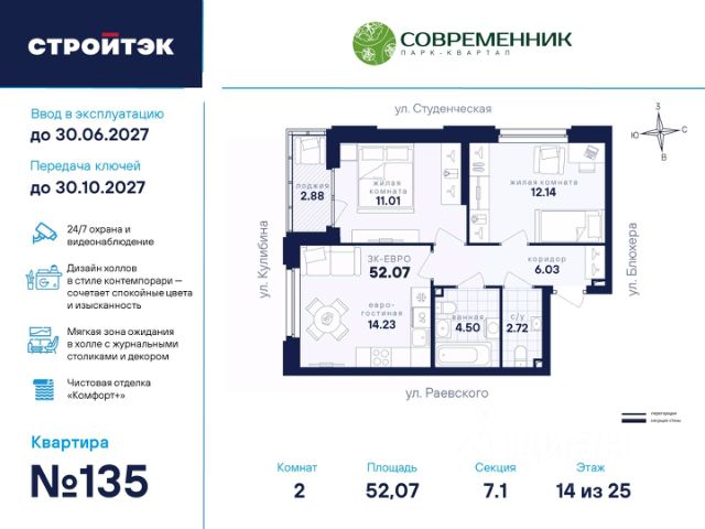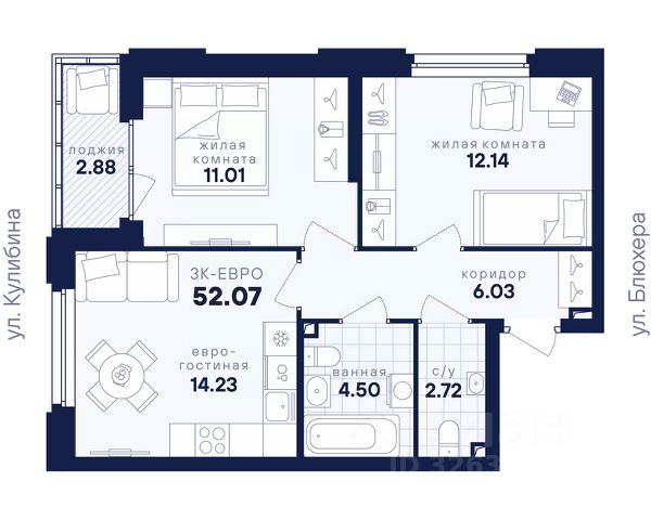 Уникальное предложение по соотношению цена/качество! В чистой продаже просторная квартира в 10 минутах от центра по адресу улица Библиотечная, дом 50а (ЖК Библиотечный, микрорайон Втузгородок).