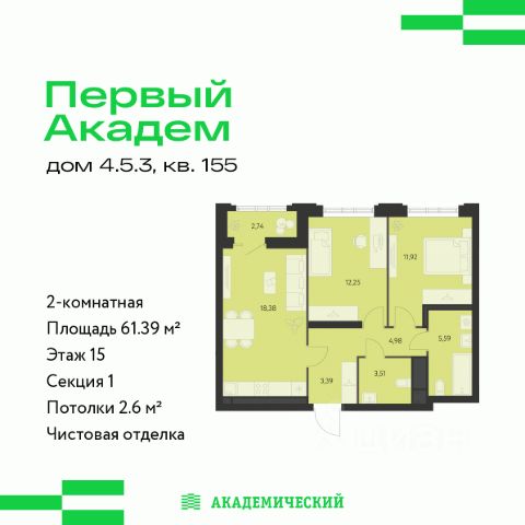 • ✓ В базе Циан 128 2-комнатных квартир на 15 этаже в микрорайоне Академический в городе Екатеринбург