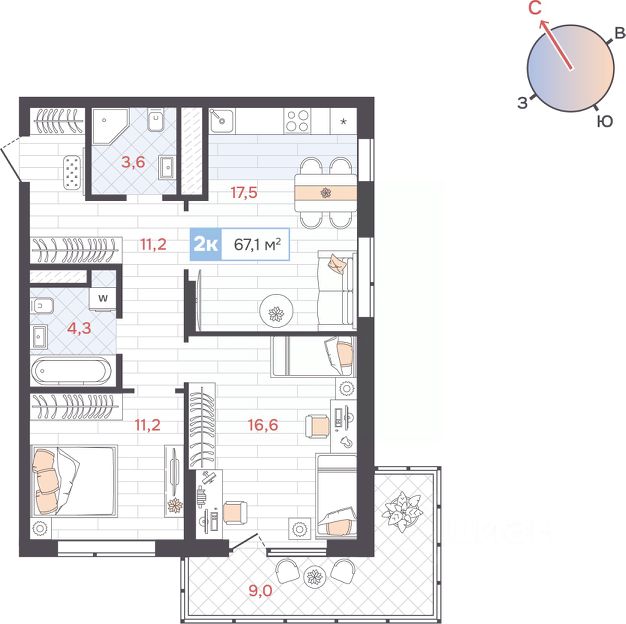 Успейте оформить бронирование, пока действует скидка! Срок предложения ограничен! Стоимость квартиры указана со скидкой, ваша экономия составит 620,000 RUB. Звоните, мы вам все подробно расскажем! Квартира с кухней-гостиной и двумя спальнями в Южных кварталах. Особенности планировки: гардеробная, окна в пол, лоджия, предчистовая отделка, терраса на крыше. квартиры в нашей базе: ЮКВ11-Ж1.16.1. Жилой район "Южные кварталы" расположен в границах улиц Московская, Шаумяна и Фурманова, недалеко от автовокзала. До центра города — 10 минут на автомобиле. До станции метро "Чкаловская" — 15 минут пешком. Рядом находится парк, школа олимпийского резерва, несколько гимназий, лицей, детские сады и городская больница. "Южные кварталы" — проект комплексного редевелопмента территории, разработанный архитекторами Брусники совместно с голландскими бюро. Он разделен на несколько частей, каждая из которых имеет свой характер. Вдоль оживленной Московской появятся более высокие и крупные дома. Профиль спокойной и очень зелёной Шаумяна сформируют кварталы среднеи этажности. В глубине района мы расположим урбан-виллы, чуть дальше — башни-доминанты. Последние будут играть роль визуальных акцентов и впоследствии станут символами этого места. Ближе к Фурманова мы организуем образовательный кластер. Его составят два детских сада на 300 и 325 мест и школа, рассчитанная на 1500 учеников. Школа будет иметь спортивную зону, которая станет доступна и жителям района. Свяжет территорию сеть общественных пространств. Её центральным звеном станет зелёный променад, проходящий сквозь весь район и соединяющий его с парком 50-летия ВЛКСМ. #Z5Cifc